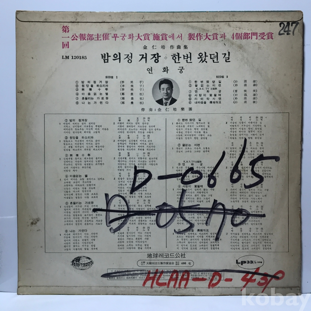 | 자켓상태 | VG : 주름, 접힘, 모서리 찢김 다수 | 음반상태 | EX : 재생에 영향 없는 가벼운 기스 존재 | 발매정보 | 알수없음 | 가사지여부 | 무 |