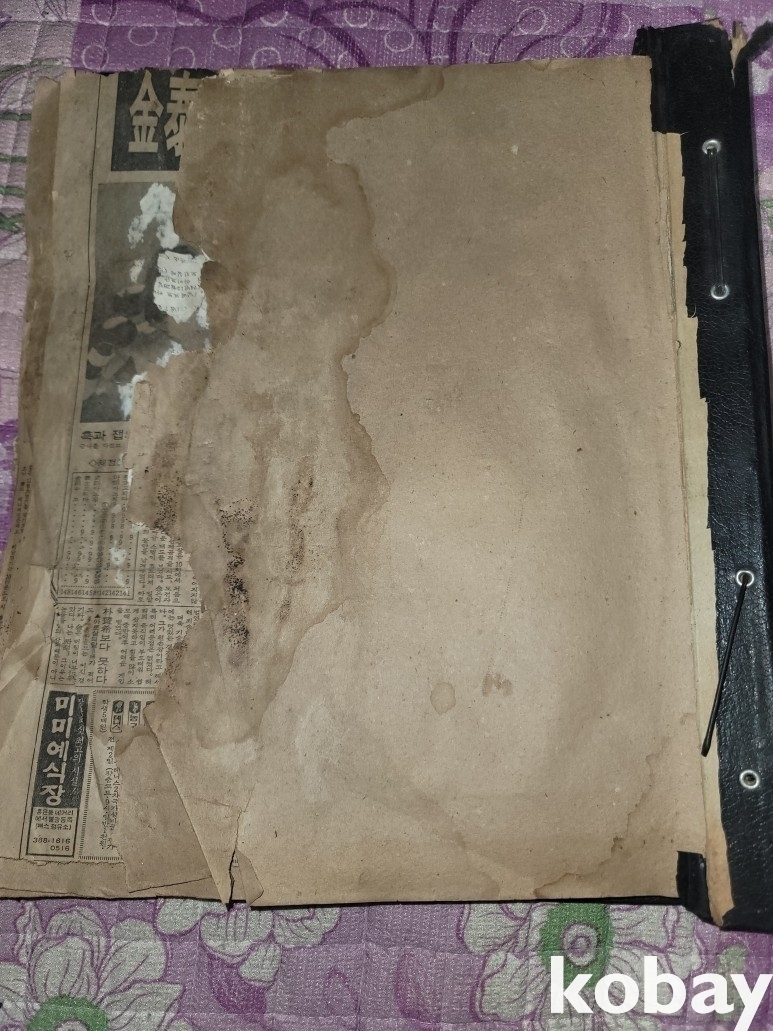 세월 감이 느껴지고 오래되어 스크랩북 뒤 커버가 분실된 상태입니다.
