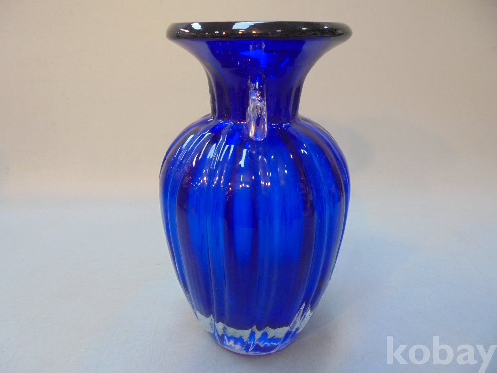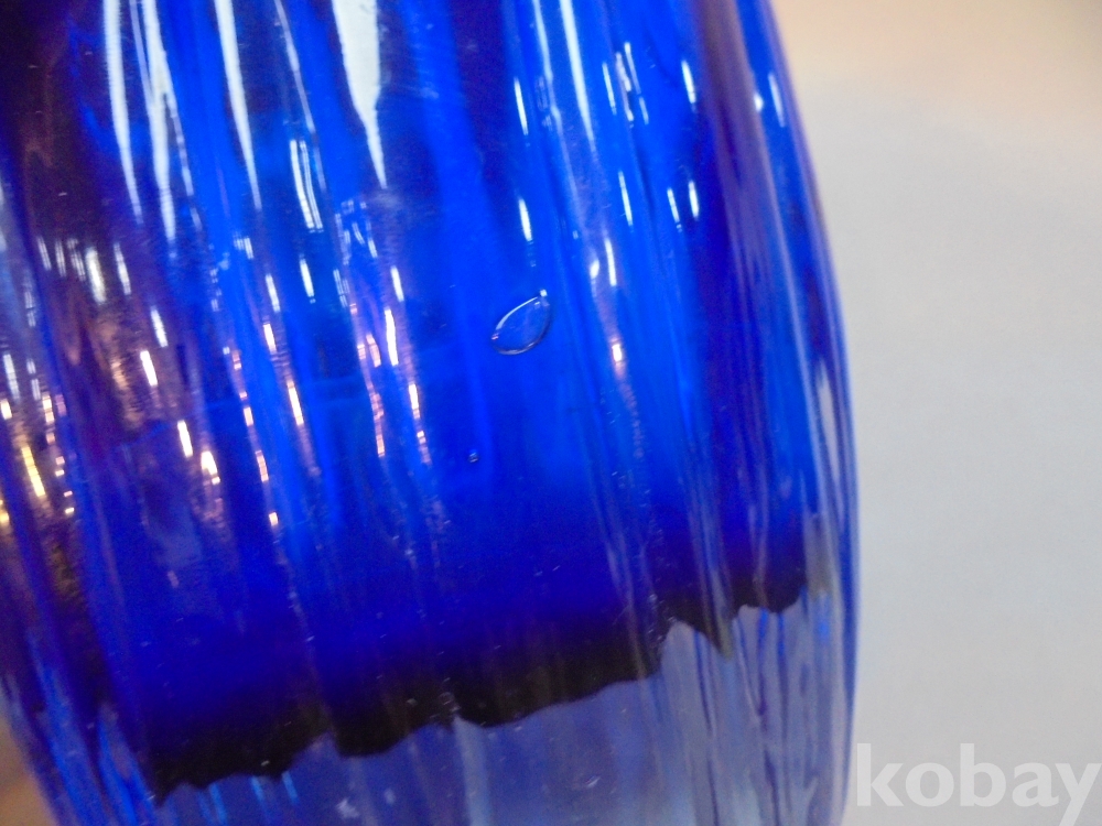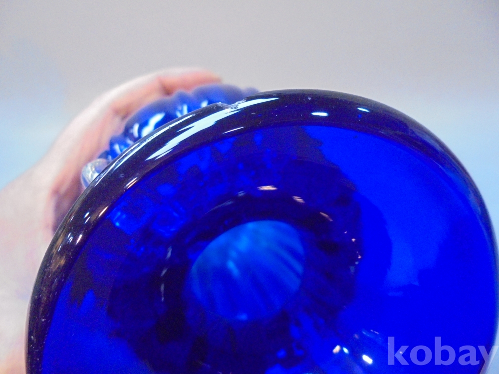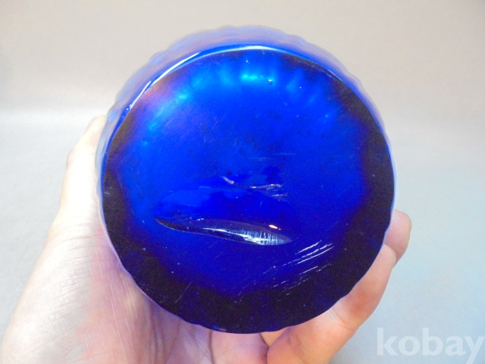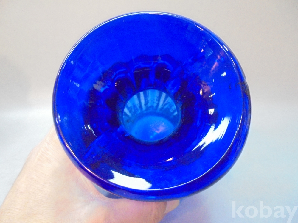 시골에서 수집한 묵직하고 두꺼운 옛날 파란색 불어 유리화병 입니다.