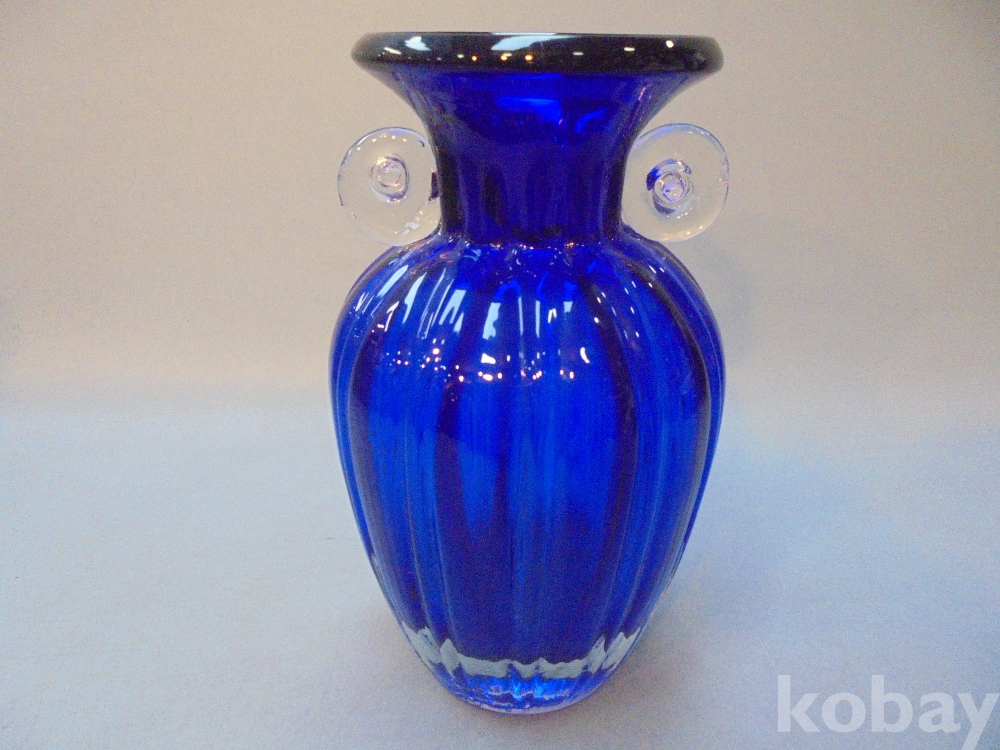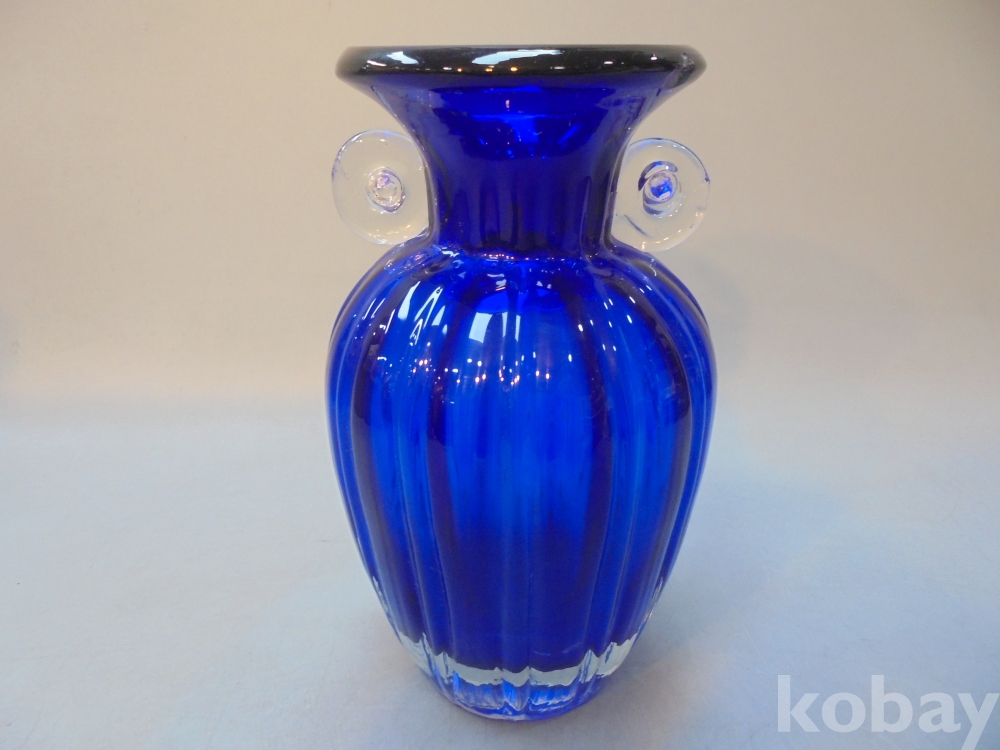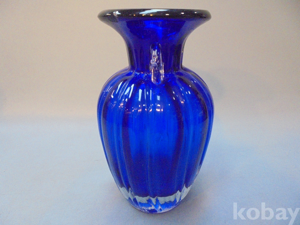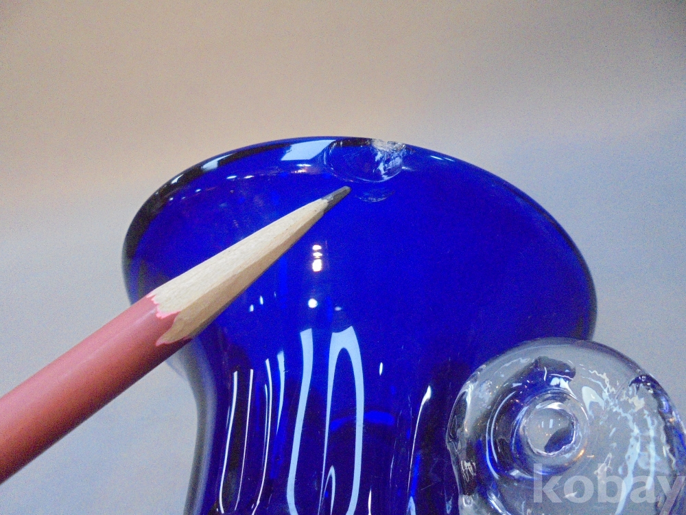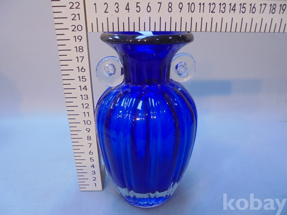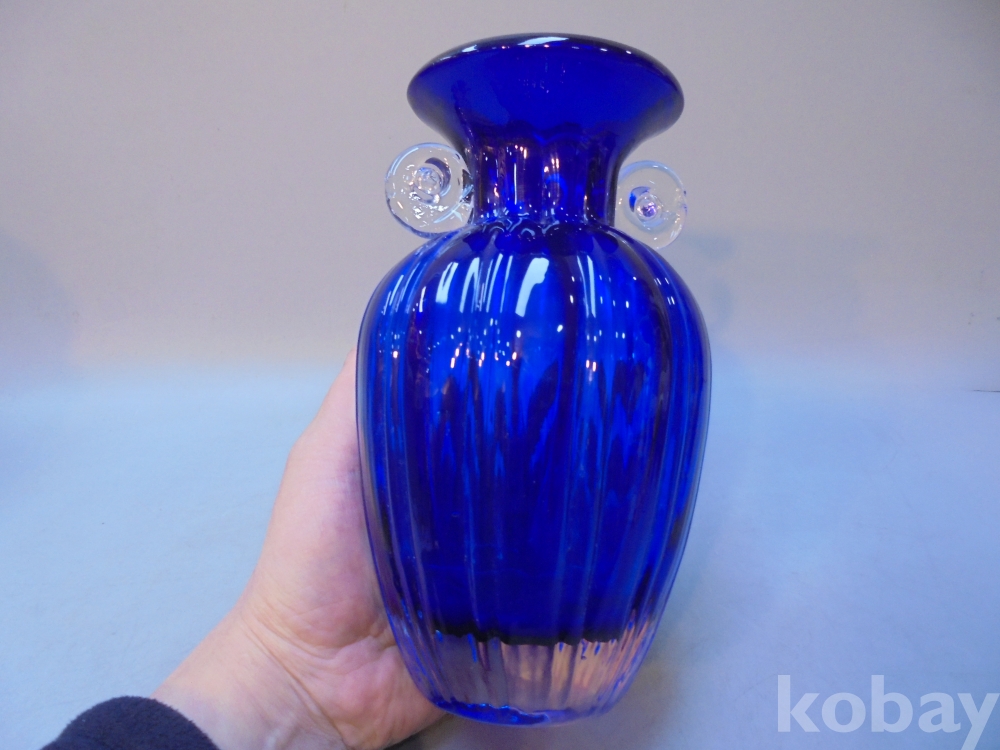 시골에서 수집한 묵직하고 두꺼운 옛날 파란색 불어 유리화병 입니다.