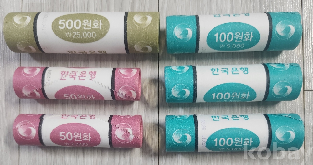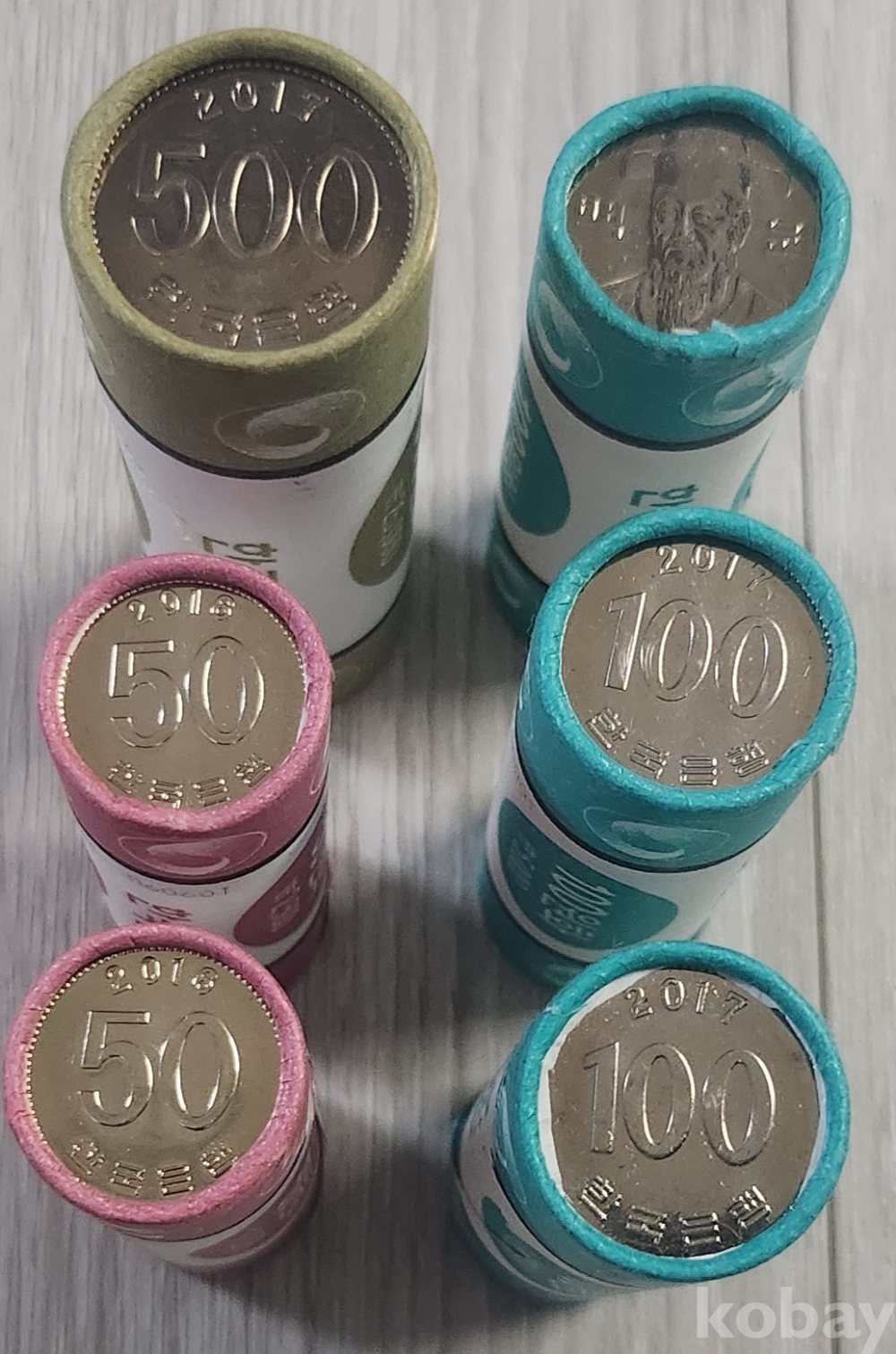한국은행 미사용 현행주화 2017년 500원1롤 100원3롤 2016년50원 2롤 합6롤 입니다