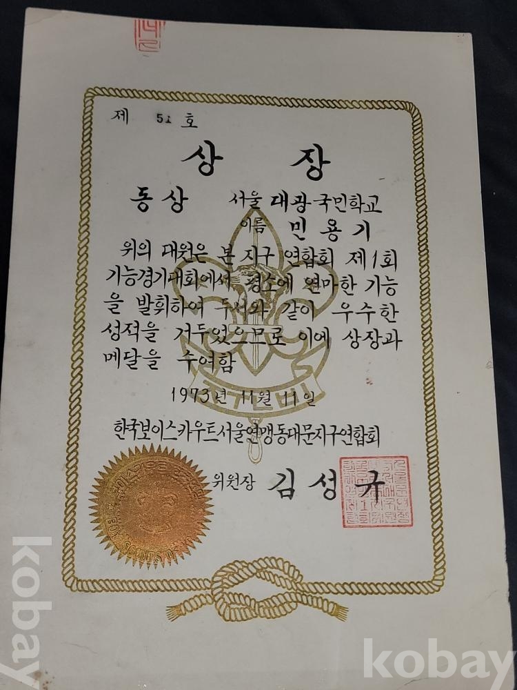 빈티지 세월 감이 느껴지는 70년대 보이스카우트 상장 등 각종 상장 4장 일괄입니다.