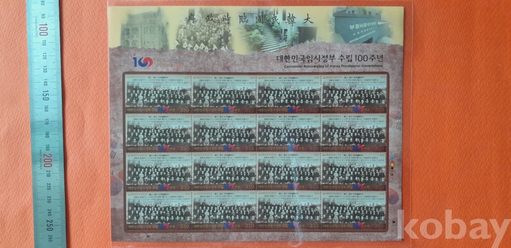2019 대한민국임시정부 수립 100주년 기념 16매 전지 입니다.