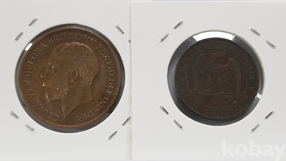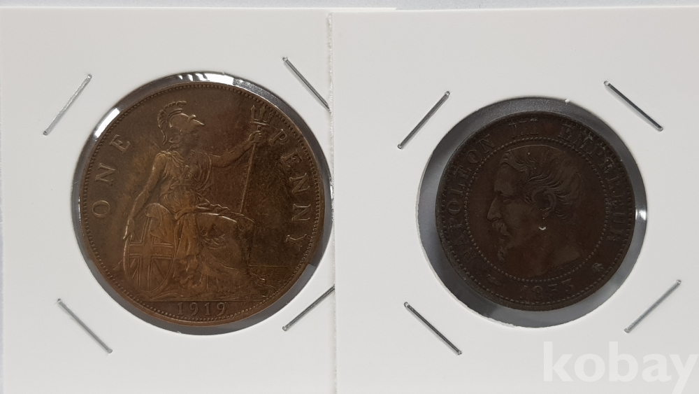 - 1919년, 1853년 영국, 프랑스 100년 이상 된 해외주화 2점 일괄