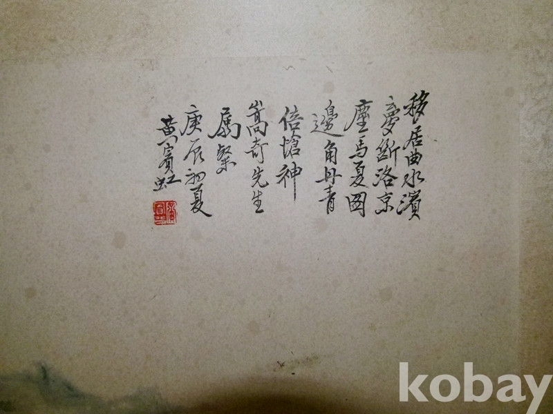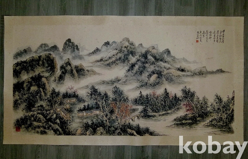 중국 근대 산수화 거장 황빈홍(黄宾虹) 1940년 대폭 횡폭 청록산수화