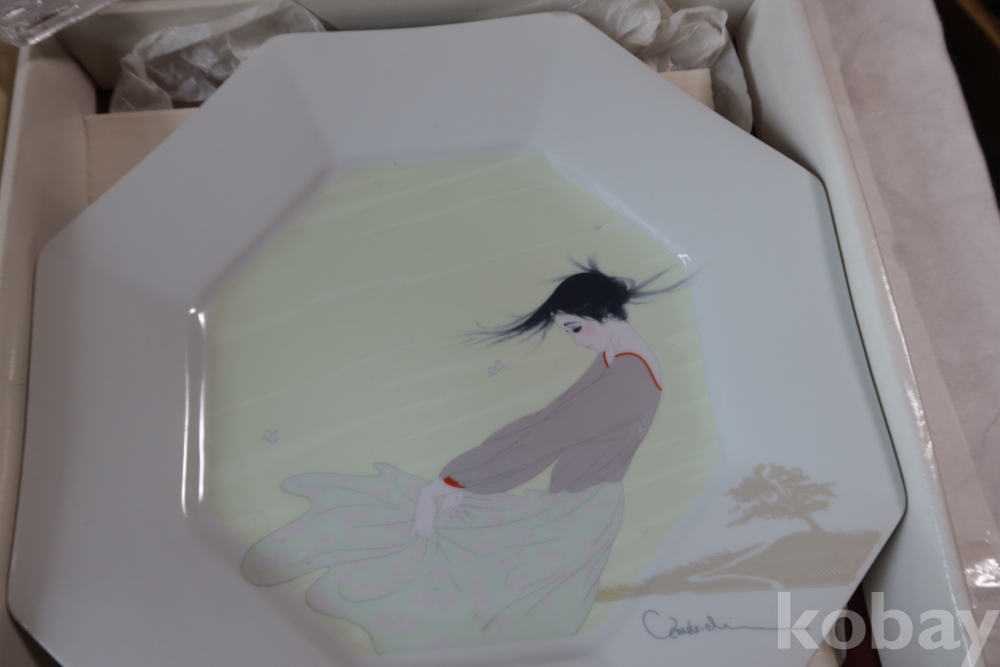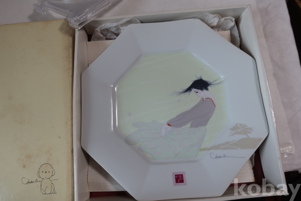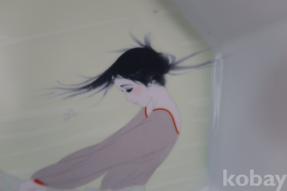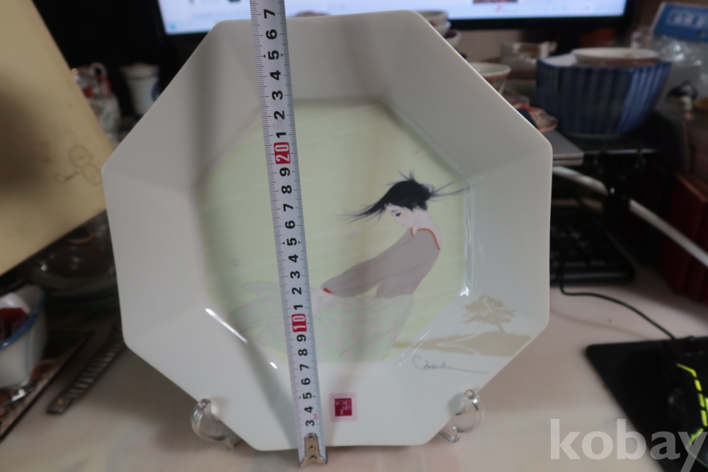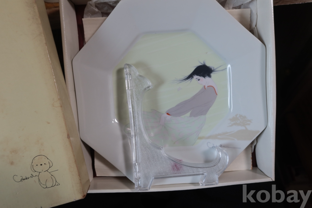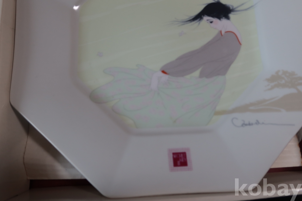멋진 그림을 가진 도자기 접시 임니다 오리지날 상자를 가진 명품 이며 받침대도 보이는 상쾌한 명품 임니다 상자는 세월의 흔적이 보임니다