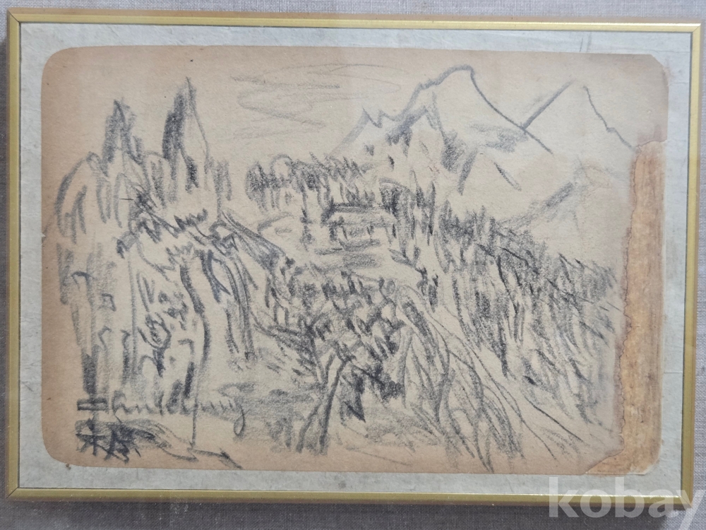 주경 화백 1호 연필과 목탄을 이용한 드로잉작품 <풍경>작품입니다. 한국 1세대 추상미술의 거장 주경화백의 1950년대 이전의 작품으로 전문소장가로부터 구매한 그림입니다.