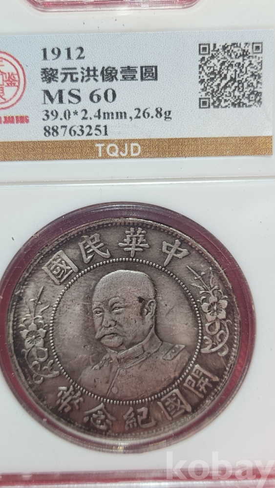 1912년 큐알코드(QR CODE)가 함께하는 은색 중화민국 개국기념 밀봉된 상태입니다,