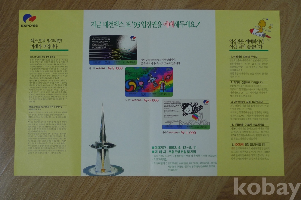 1993년 대전엑스포 입장권 예매 안내 전단지