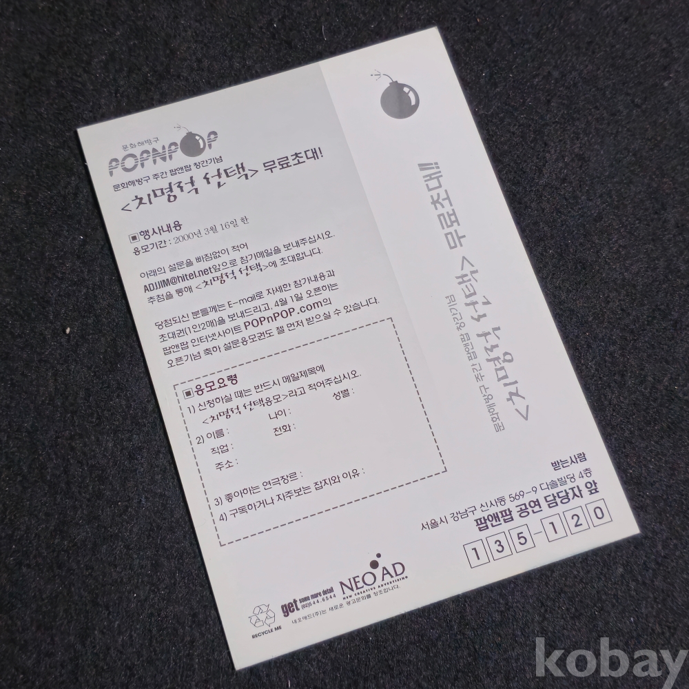 (천원경매)(((영화자료/영화전단카드/엽서))) 극단 신화 치명적 선택 카드 (2000)