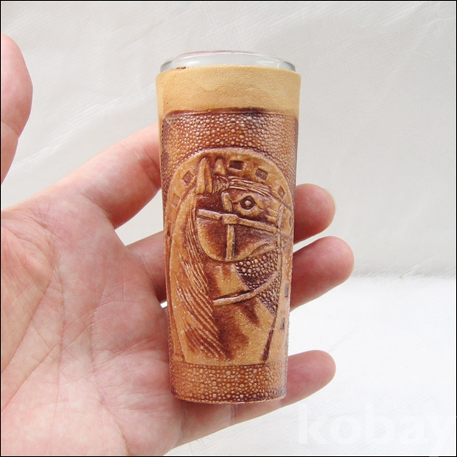 말 그림 가죽으로 감싼 더블 샷잔 (1121)