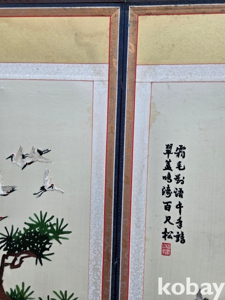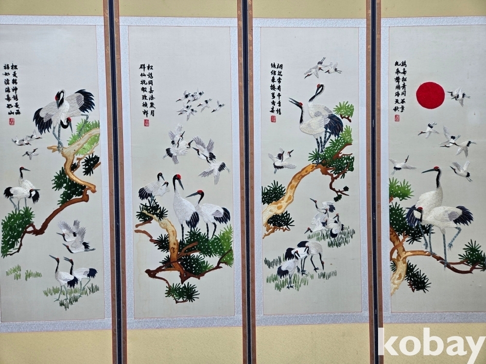 소나무에 학 표현 자수 8폭 병풍 입니다. 입니다.