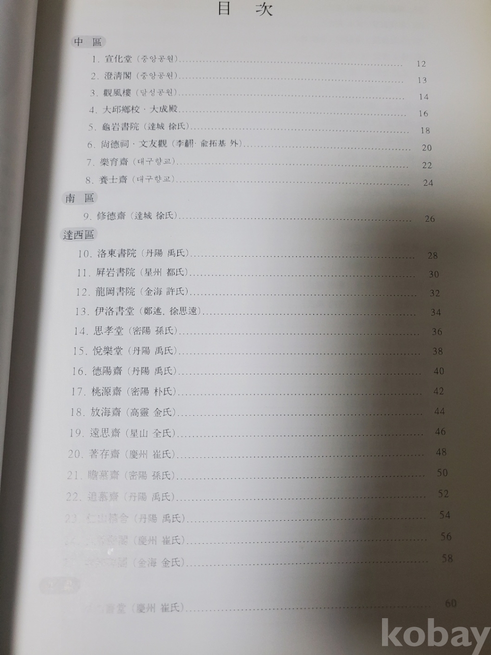 1. 대구의 누정록, 대구중구문화원, 1996년, 302쪽, 제자 - 모산 심재완선생, 비매품, 상태 상, 사진 참조
