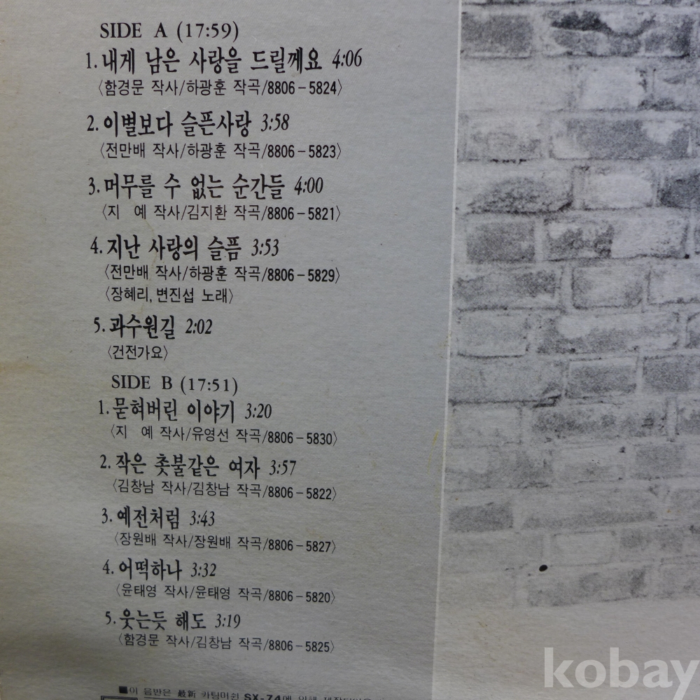 사진을 참조하시되, 음반은 사용 흔적 있으며, 청음 양호함.