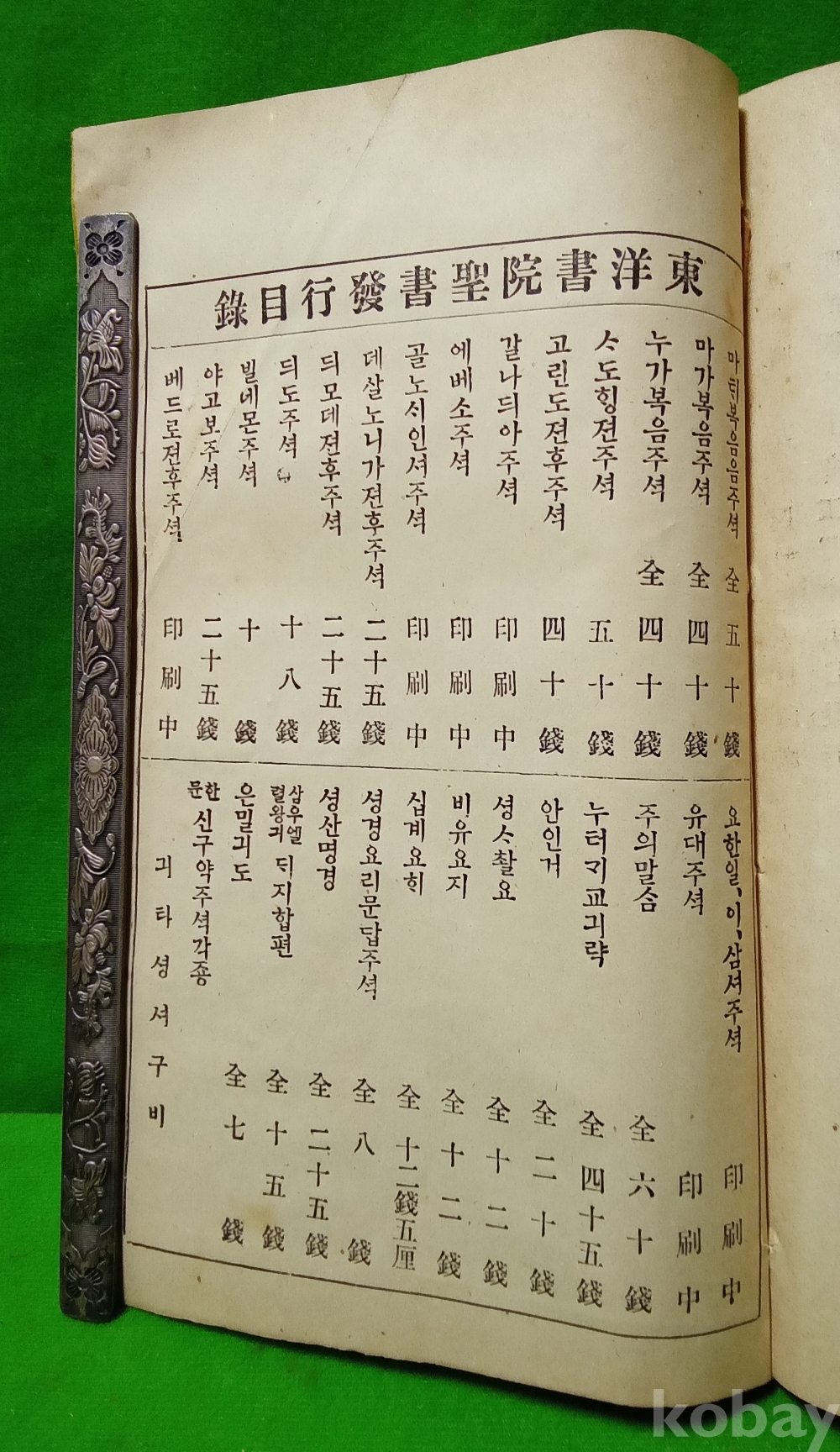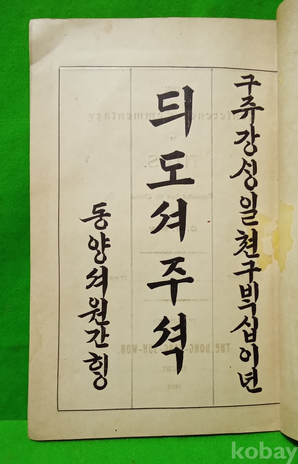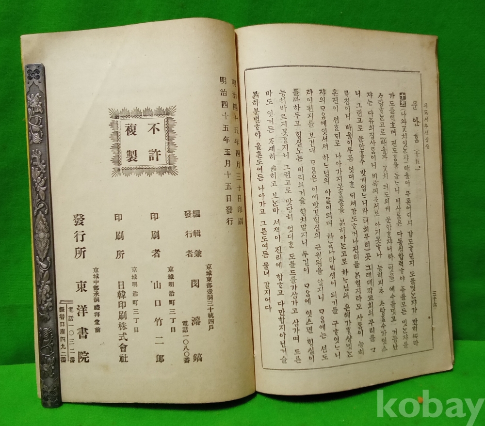 - [가보gabo 골동품] / 일제강점기 기독교 성경 자료/ 듸도셔주셕/ "구주강성일천구백십이년"/ "동양셔원간행"/ 명치45년(1912년) 인쇄 및 발행, 발행 겸 발행자 민준호/ 발행소 경성 중부 승동 예배당 전 동양서원
