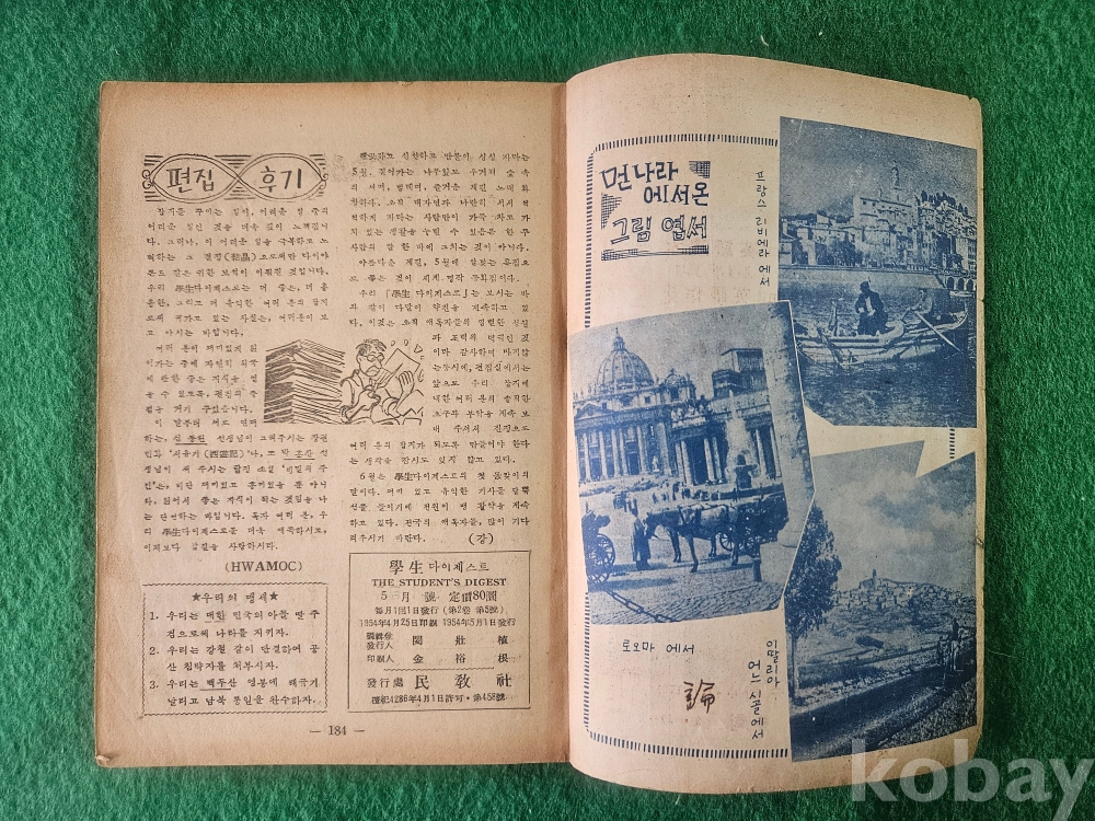 1] 품명 : 學生다이제스트 5월호 -특집 신세계명작동화집