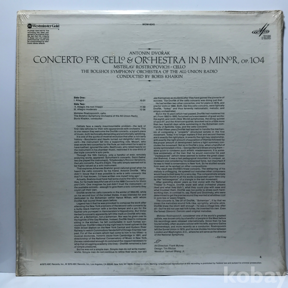 LP 83,830-51 Antonin Dvořák - Cello Concerto In B Minor, Op.104 . 자켓 EX 알판 EX 76 년 수입반