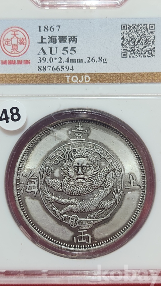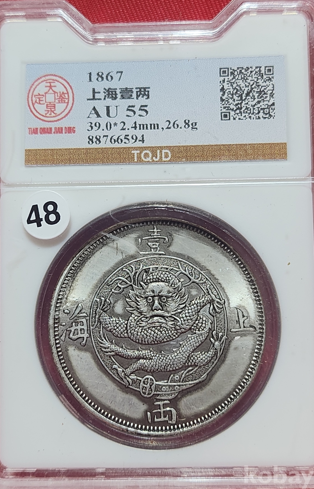1867년 큐알코드(QR CODE)가 함께하는 은색 상해일량기념 밀봉된 상태입니다,