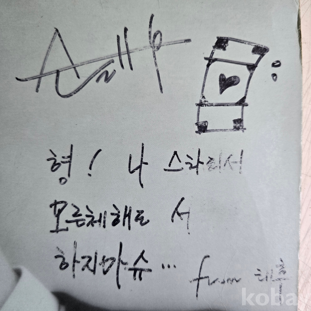 태후 싸인 글씨 옆 하트 문양 밑으로 형! 나 스타되서 모른체해도 서운해 하지마슈 from 태후