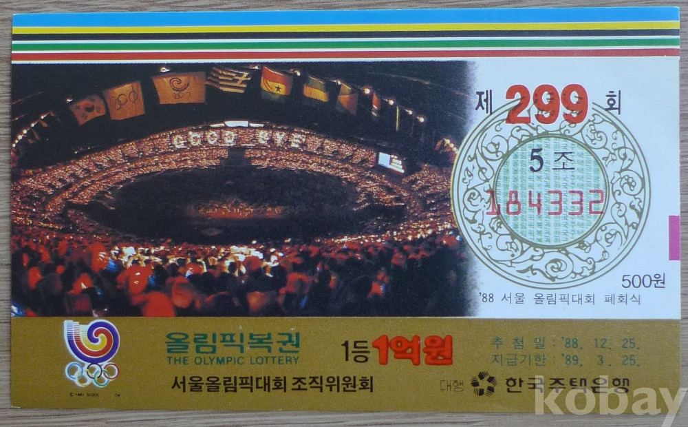 1988년 '88 서울올림픽 폐회식 배경 올림픽 복권 제299회