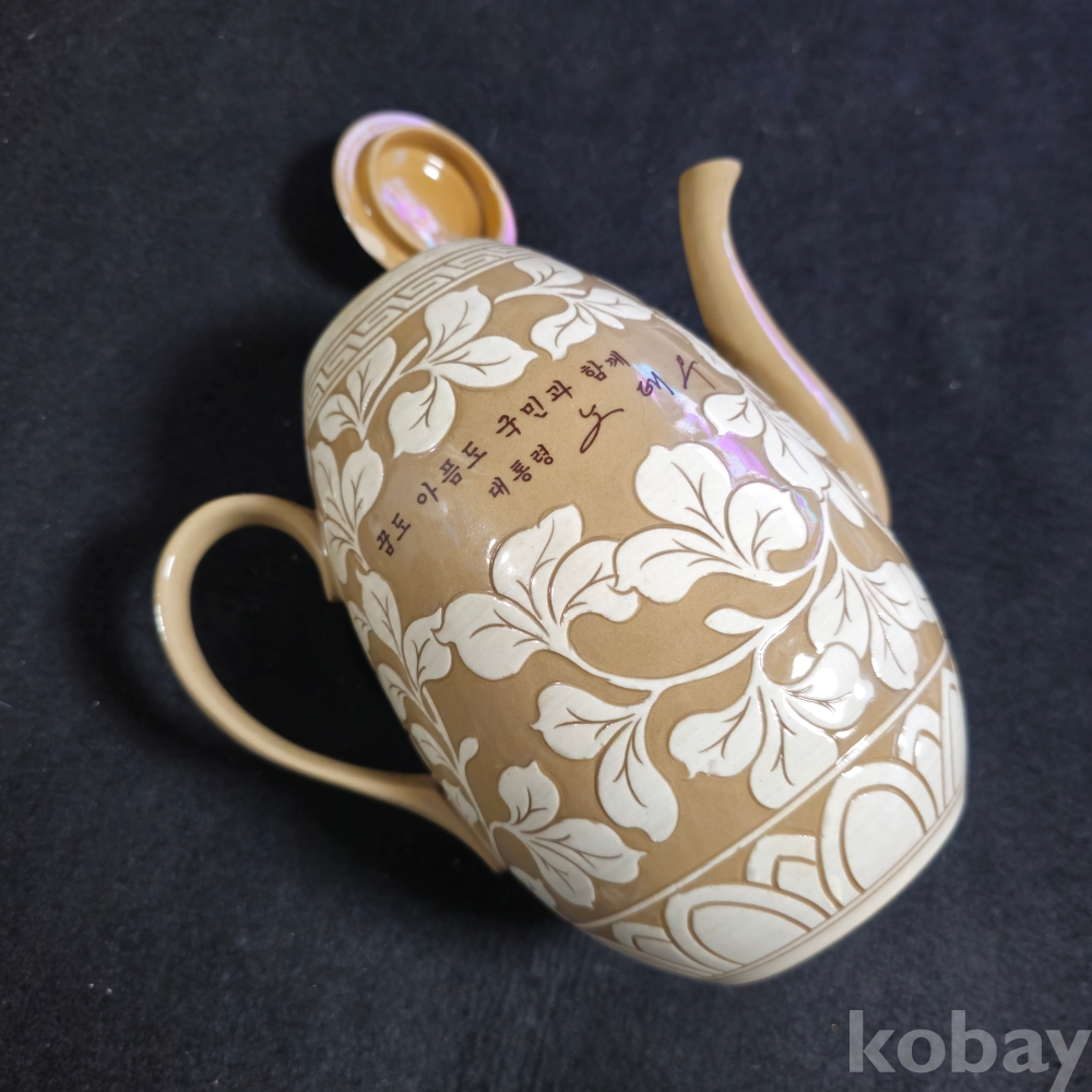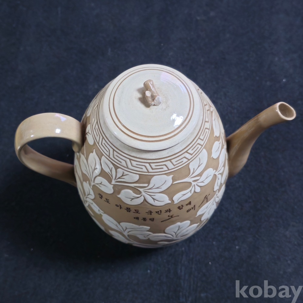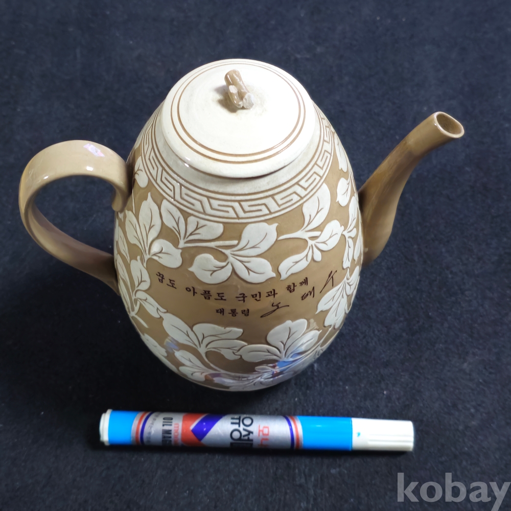 (((근현대사자료/대통령자료))) 1980년대 꿈도 아픔도 국민과 함께 대통령 노태우 싸인전사 도자기 주전자