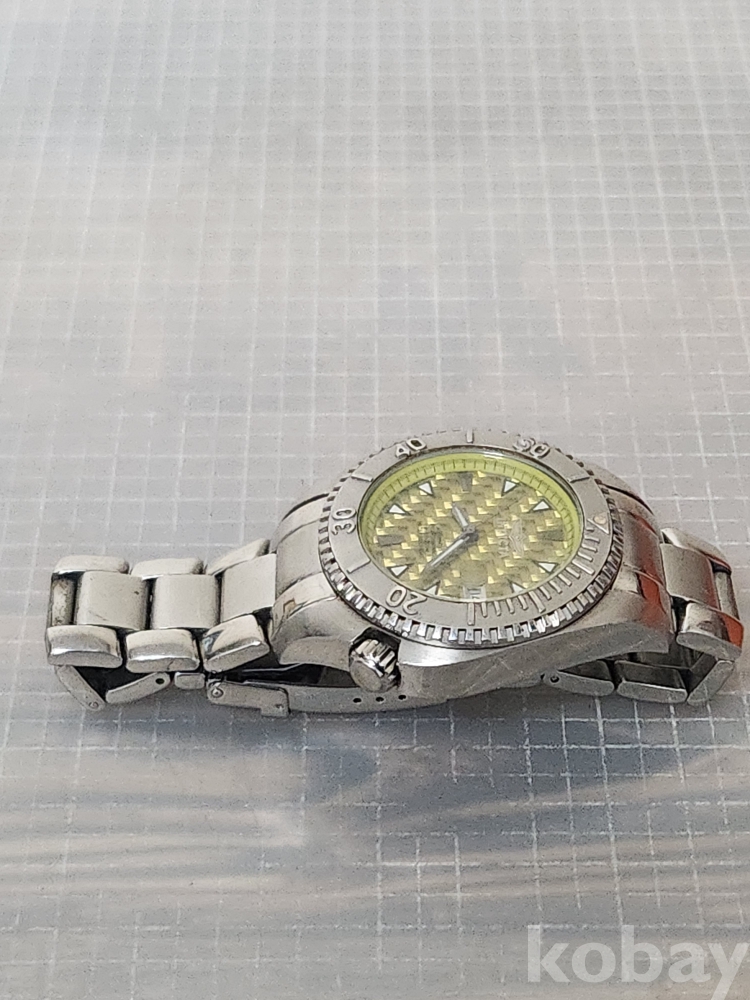 스테인리스 스틸 소재로 견고하며, 노란색 다이얼이 특징입니다