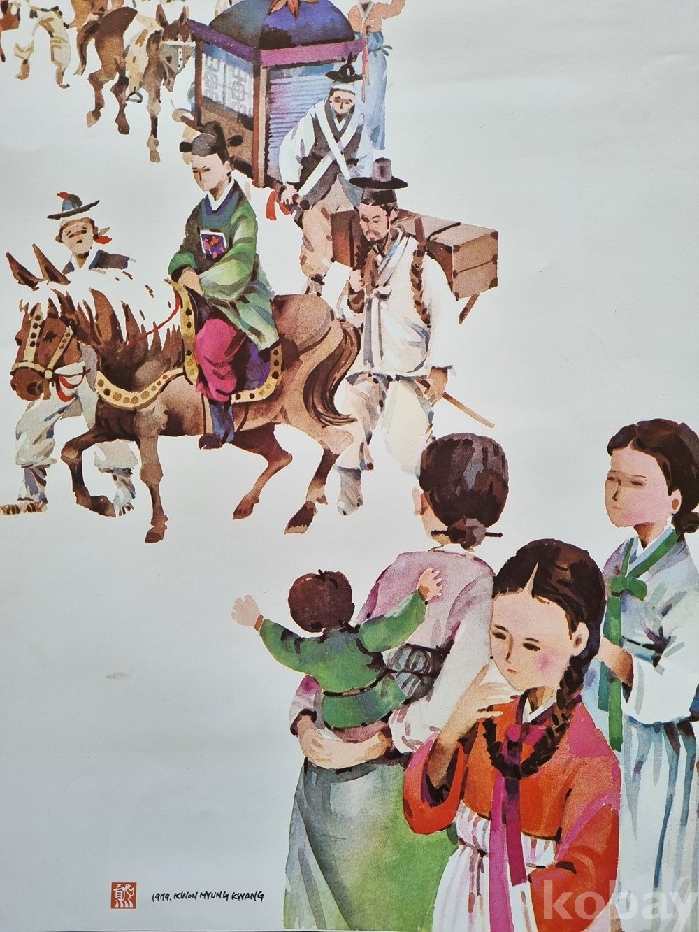 K-2 / 풍속화. 생활 그림삽화 (1979년 권명광 서명 낙관) 수채화풍 (인쇄본)