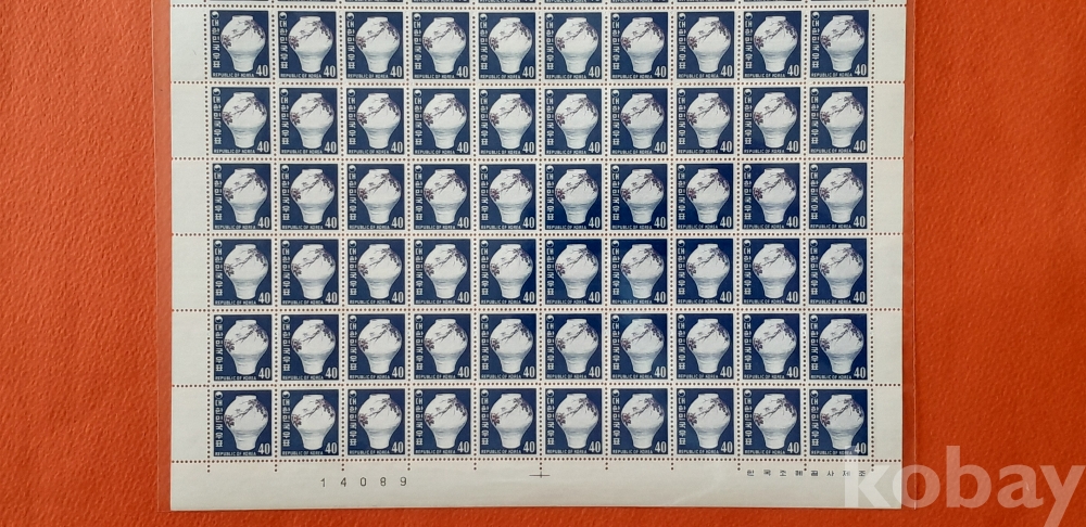 1969년 제1차 그라비어 보통 40원 조선백자 100매 전지 입니다.