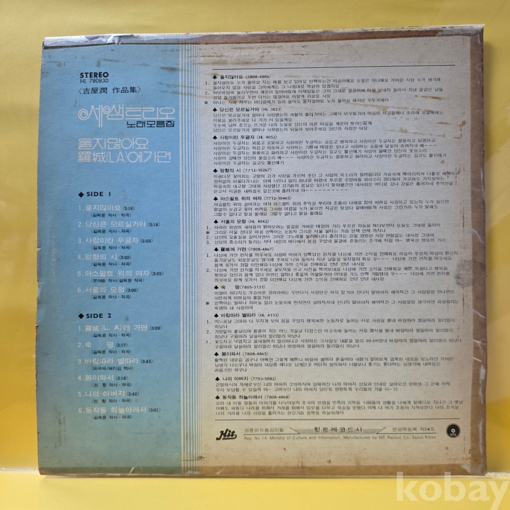 | 자켓상태 | VG : 주름, 접힘, 모서리 찢김 다수 | 음반상태 | EX : 재생에 영향 없는 가벼운 기스 존재 | 발매정보 | 초반 | 가사지여부 | 무 |