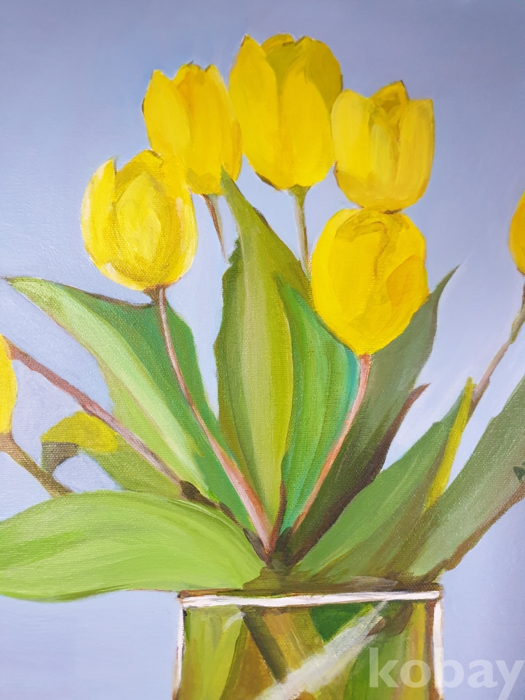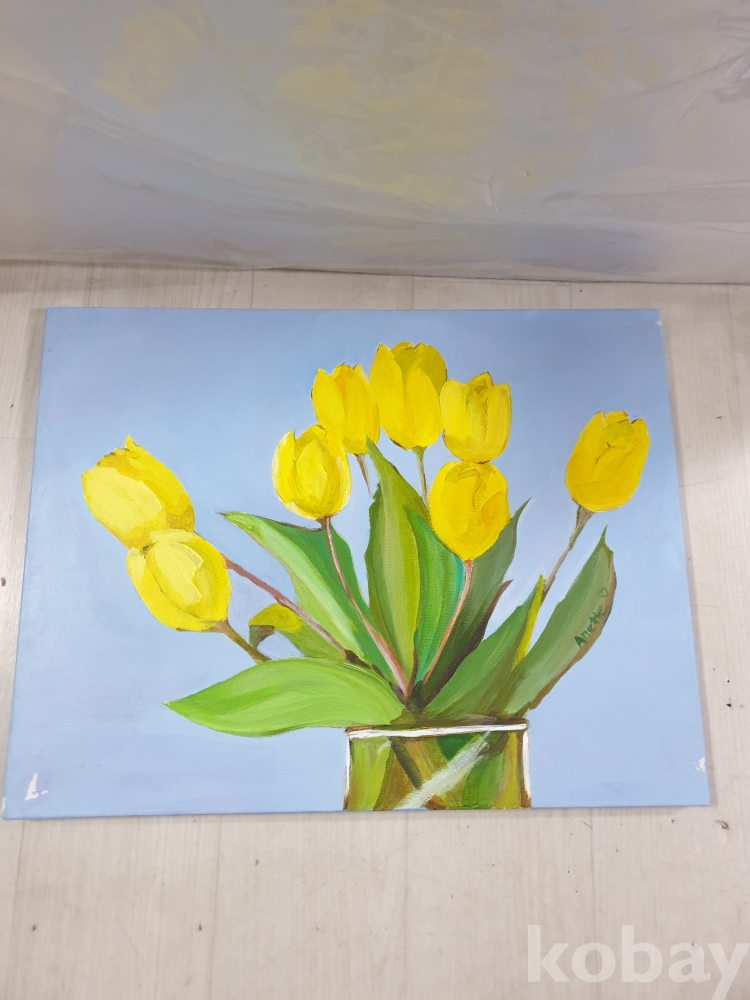 {천원경매}1-1647 노란 튜울립 (32*41, 유화, 묶음배송불가, 착불로배송됨)