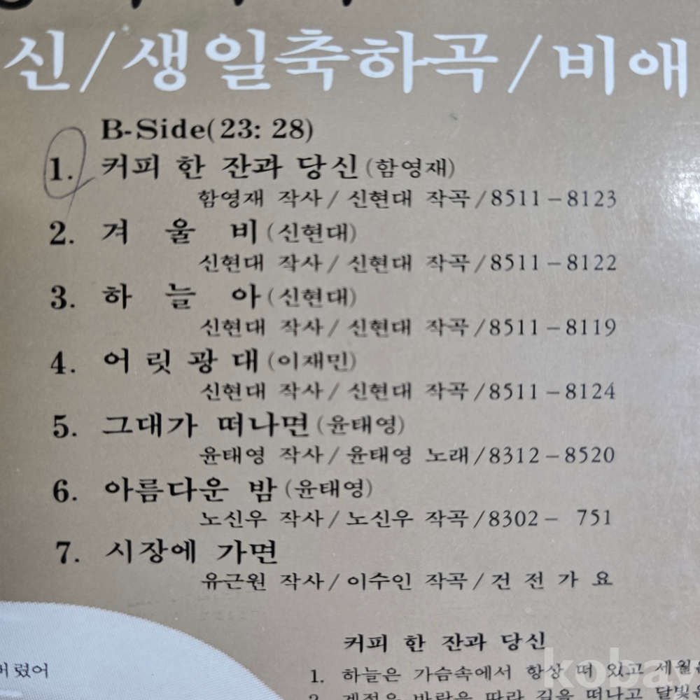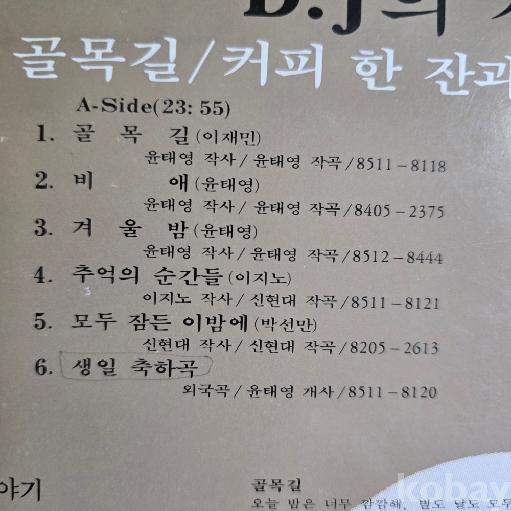 | 자켓상태 | VG : 주름, 접힘, 모서리 찢김 다수 | 음반상태 | VG : 생활 기스 다수, 가벼운 노이즈 존재 | 발매정보 | 초반 | 가사지여부 | 무 |