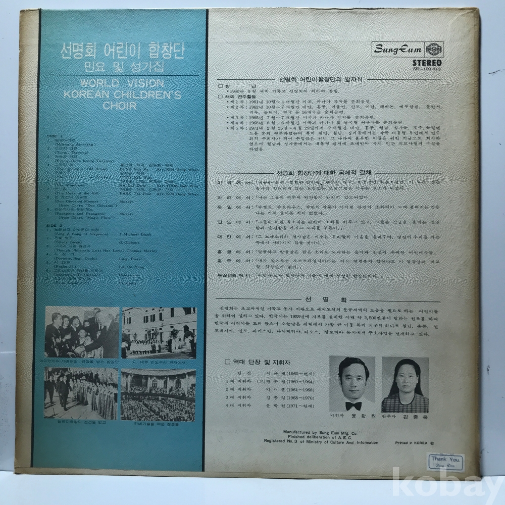 LP LP 1-21-8 선명회 어린이 합창단 민요 및 성가집 . 자켓 EX 알판 EX 72 년 국내반