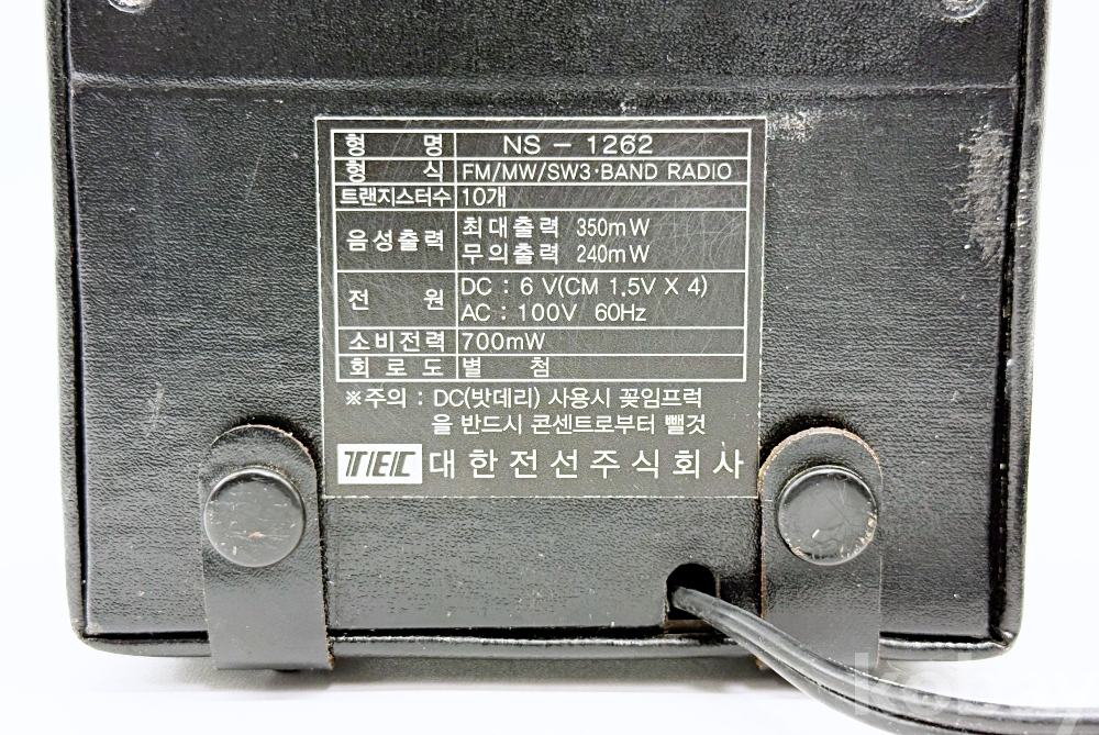 대한전선에서 생산한 FM/MW/SW 3밴드 휴대용 라디오이다. 전원 : DC 6V(CM 1.5*4), AC 100V 60Hz