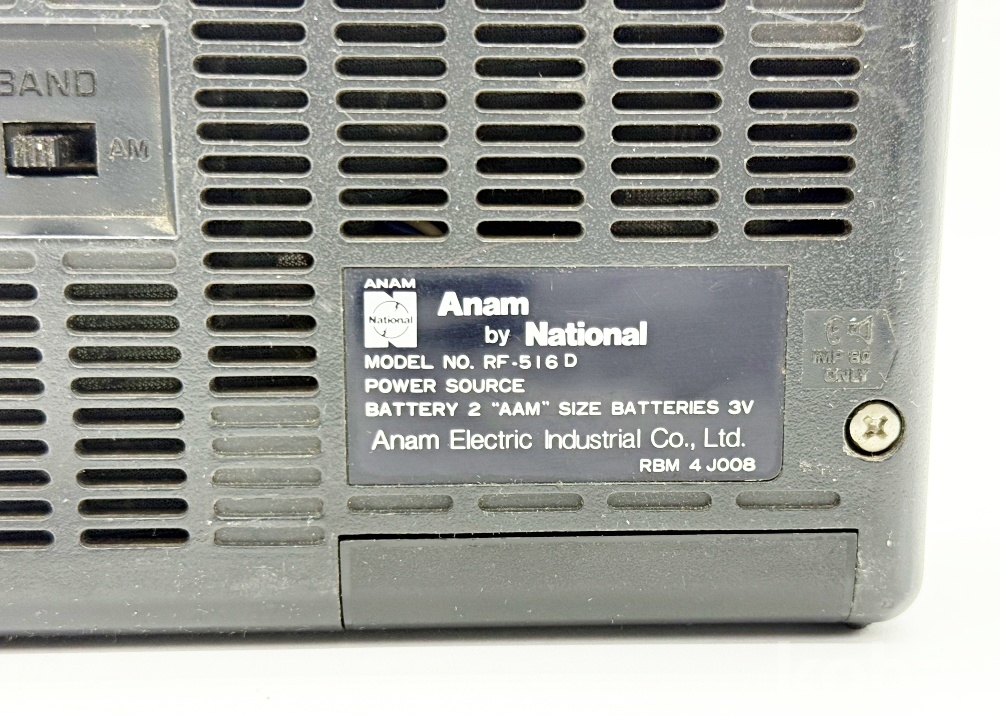상품설명 | 한국의 아남과 일본의 마쓰시타 전기산업이 합작하여 설립한 '아남 내셔널'에서 생산된 라디오이다. 전원 : BATT 2 "AAM" 3V