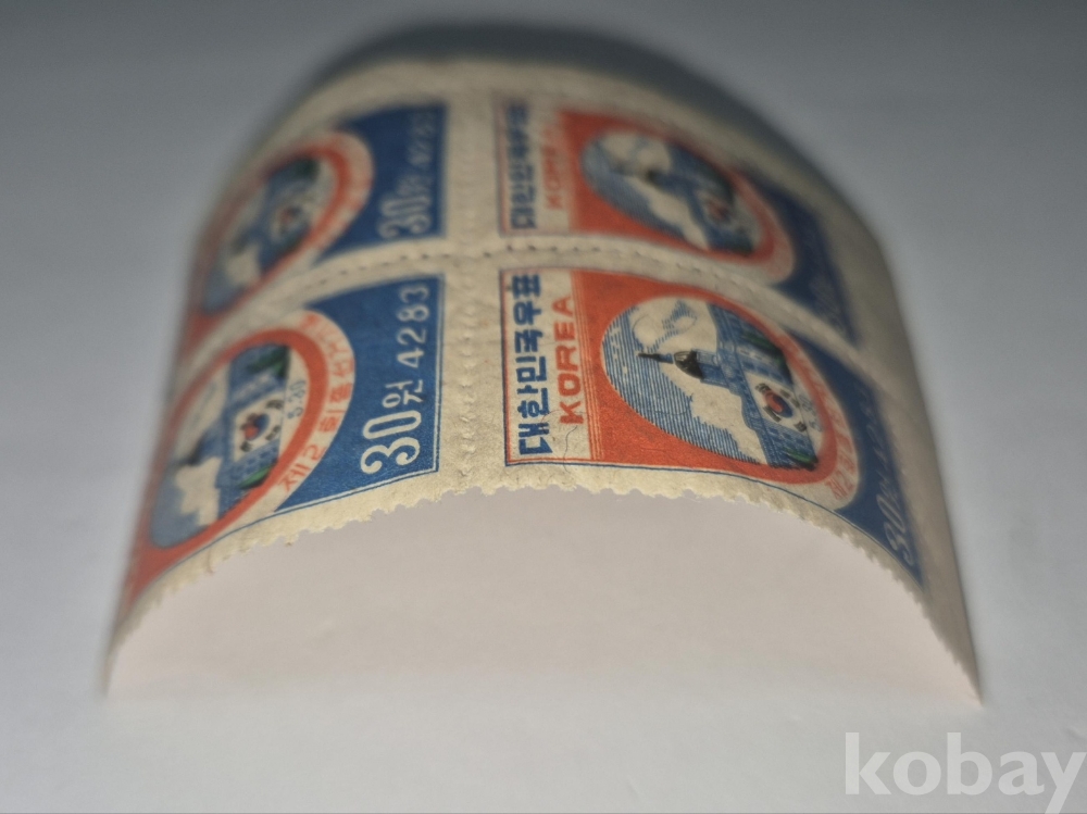 1950년 발행한 '제2회 총선거 기념우표' 4매 변지부 블럭입니다.