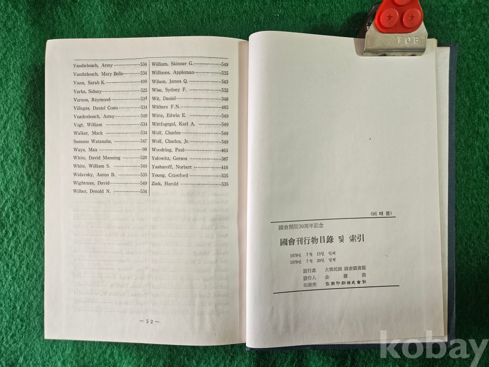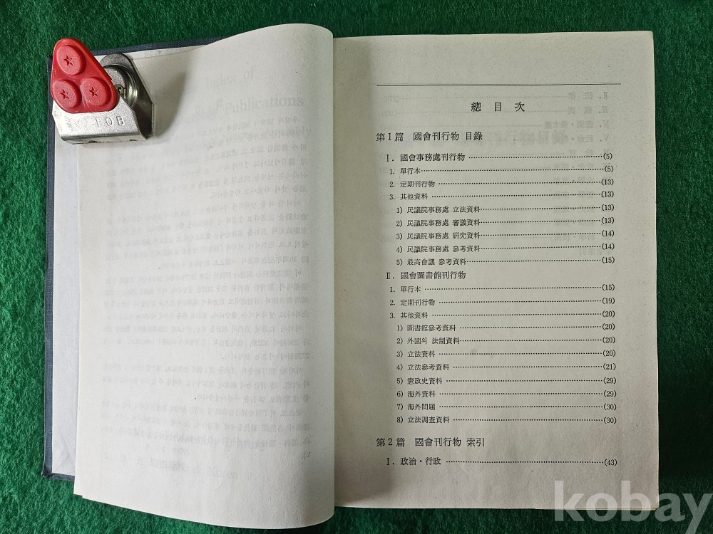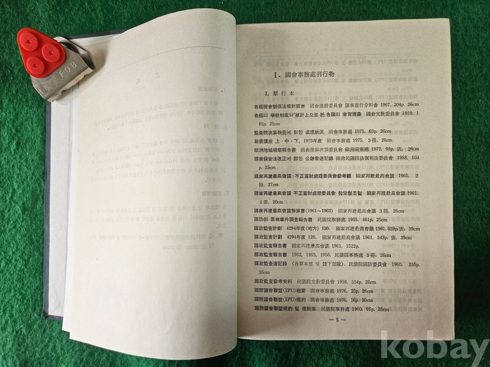 1] 품명 : 國會開院30周年紀念 " 國會刊行物目錄및索引 " (1978년)