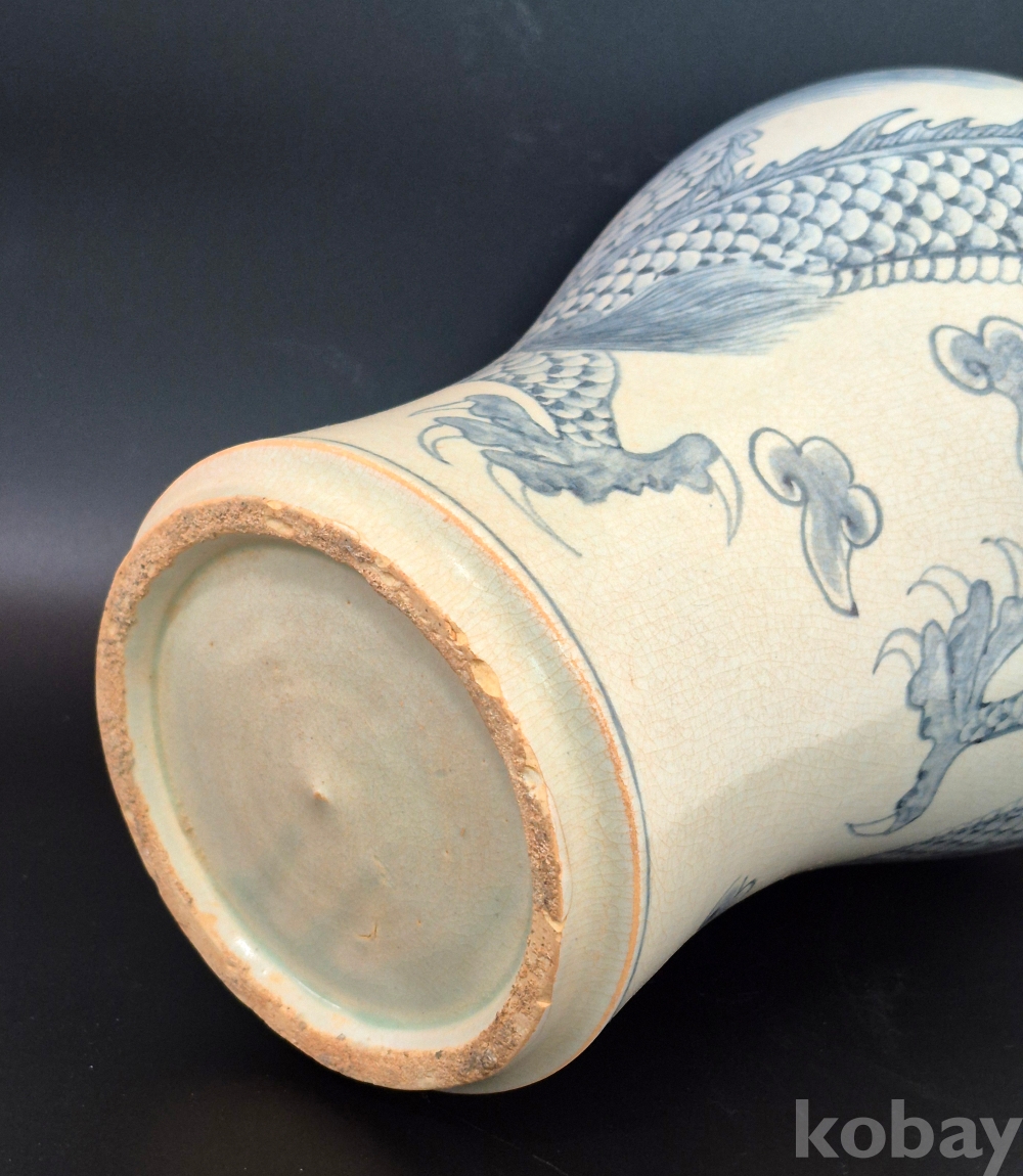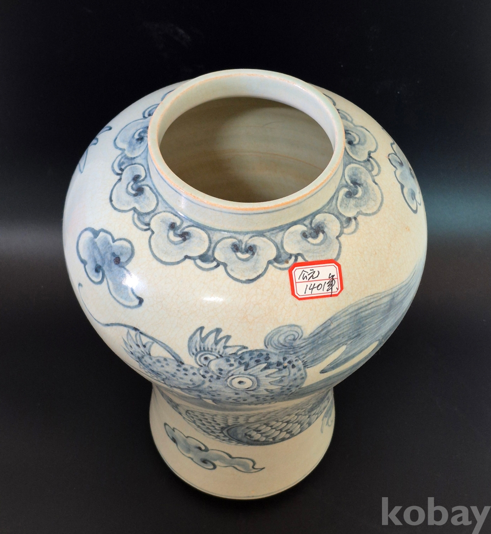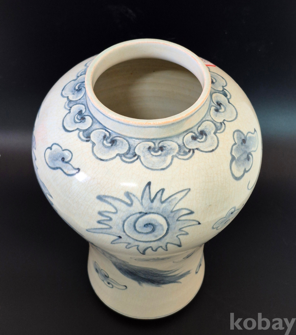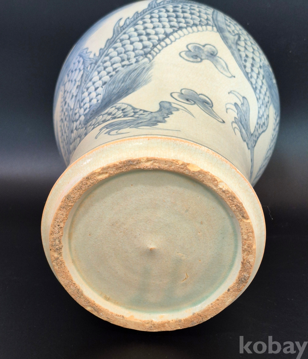 매혹적인 자태의 매병에 4과룡이 여의주를 희롱하는 보기 드문 청화백자 입니다.