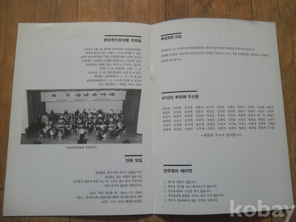 공연목록: 1997년 시민을 위한 가을음악회