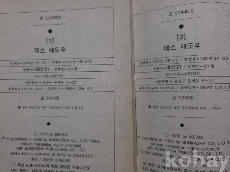 2권에 컬러페이지 없이 5페이지부터 시작되며 1권은 낙장 없습니다~