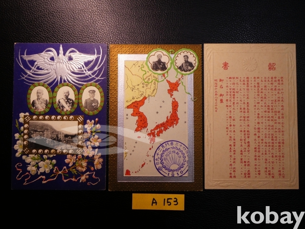 ▣근대한국엽서(진본): 1910년 한국병합(한일합방) 기념엽서 3매 완전 세트.