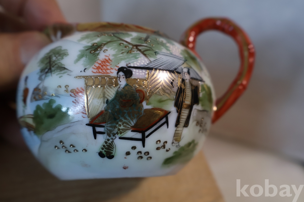 금색감의 도자기 주전자 이며 일본 특유의 그림을 가진 섬세 정교한 명품 임니다 점점이 표현돤 금방울?의 표현 등등 1920대의 수출 도자기 임니다