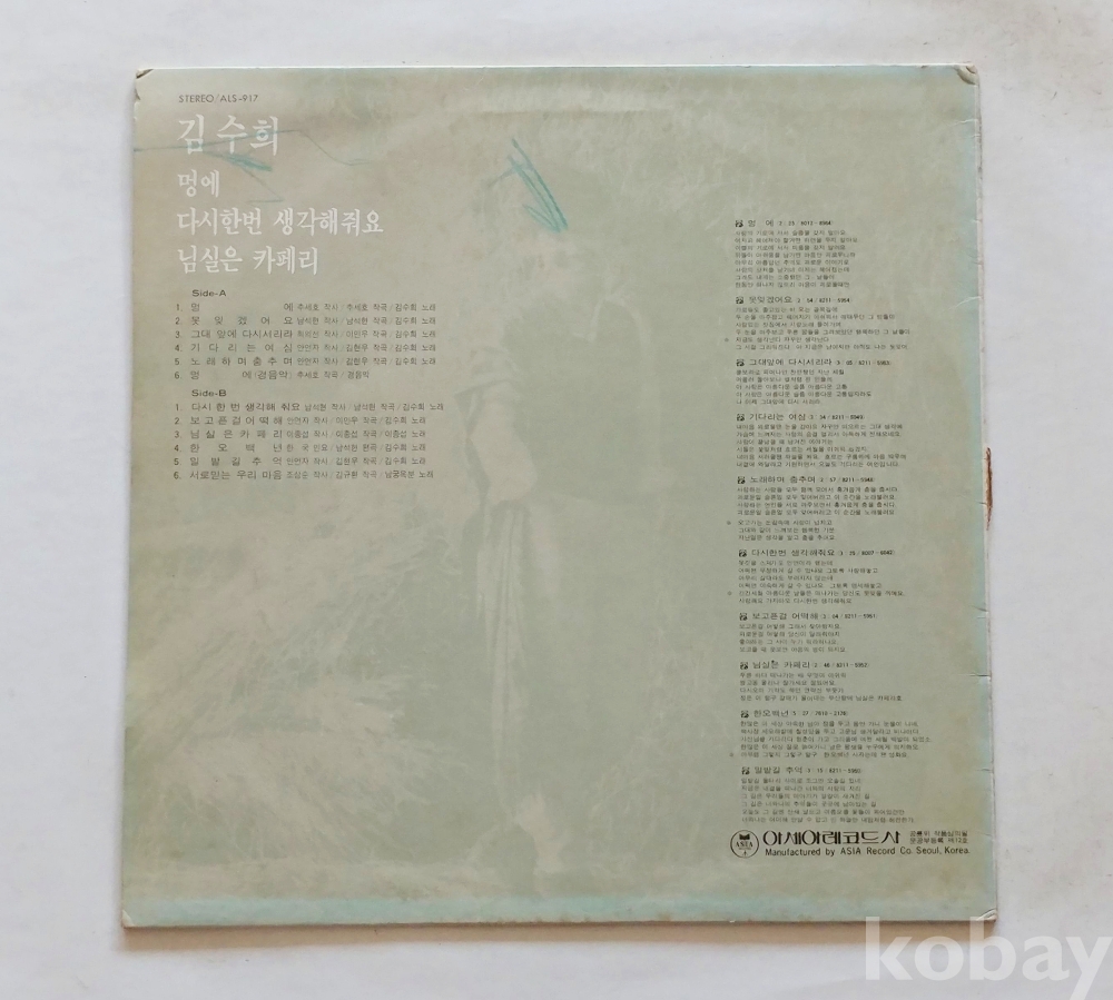 | 자켓상태 | EX : 약간의 마모, 모서리 찢김 존재 | 음반상태 | EX : 재생에 영향 없는 가벼운 기스 존재 | 발매정보 | 알수없음 | 가사지여부 | 무 |