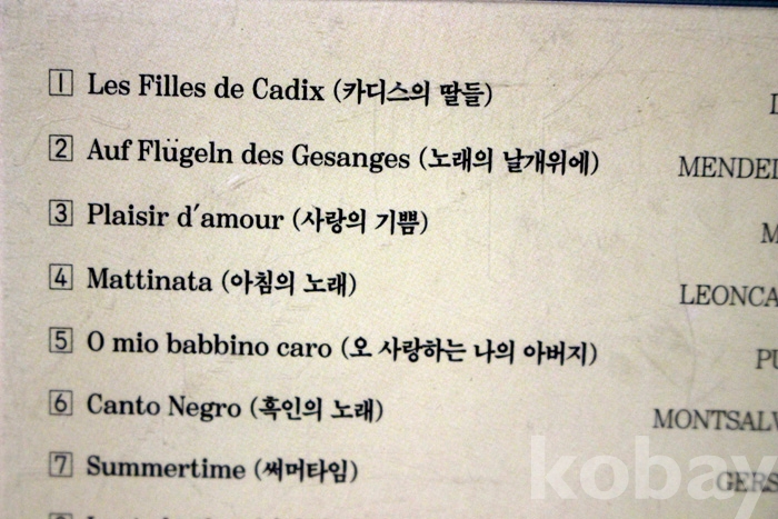 수록 곡 목은 사진을 참조하시기 바랍니다