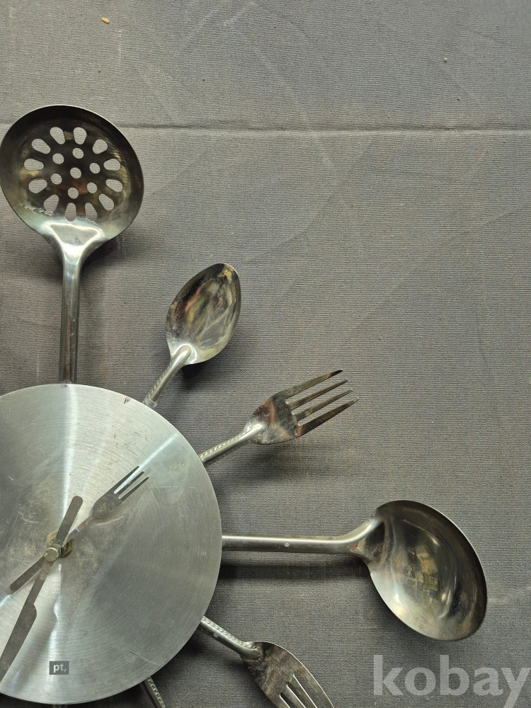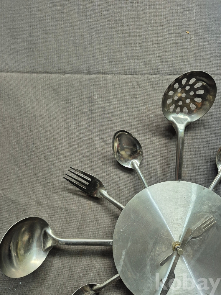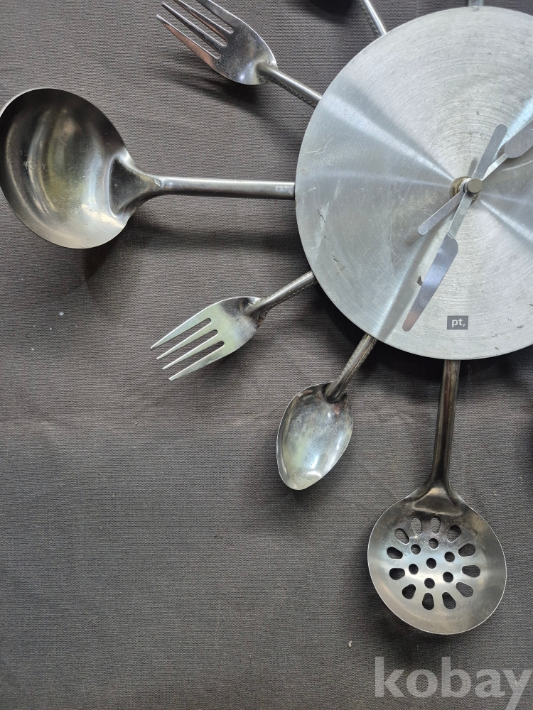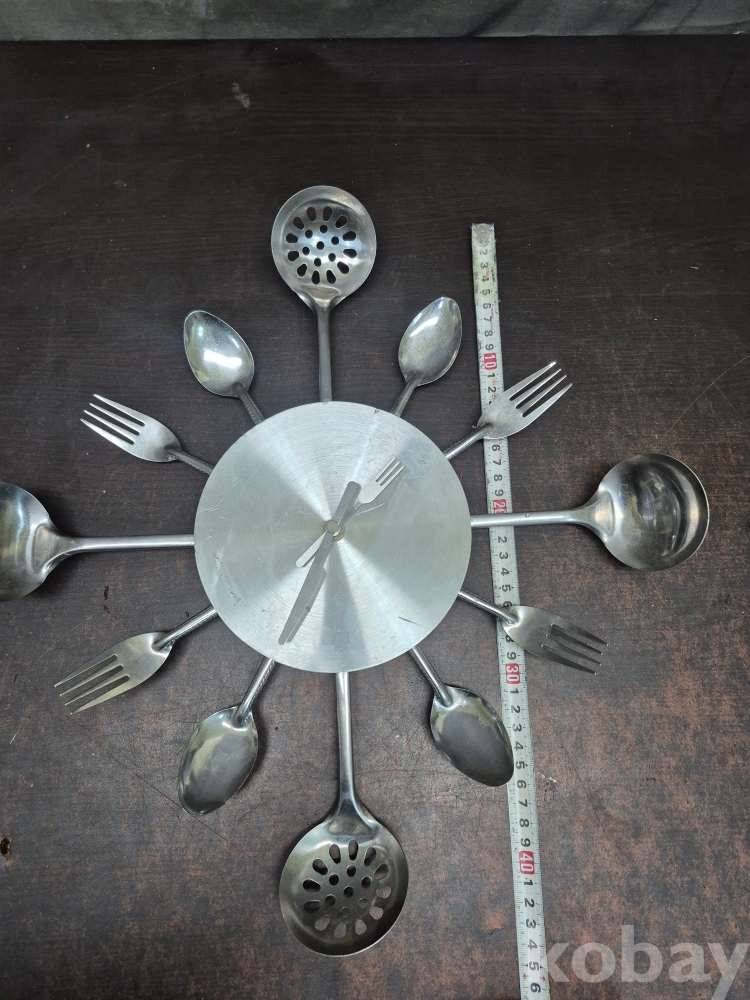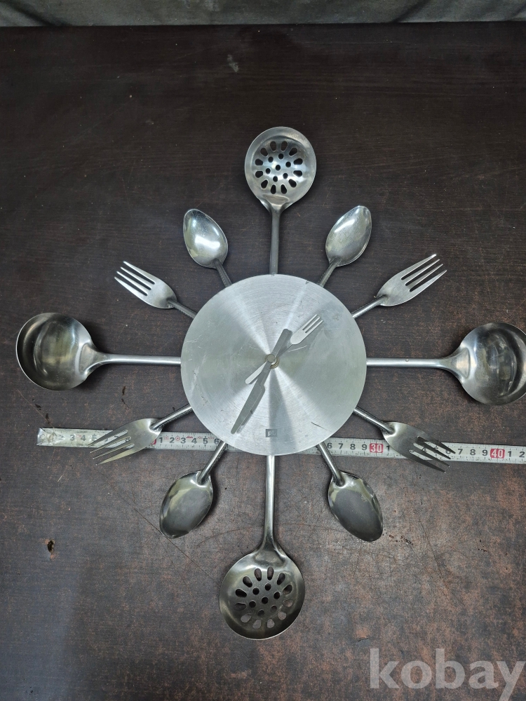 스틸로 제작된 주방용품 모양 특이한 건전지식 벽시계 40*45*10
