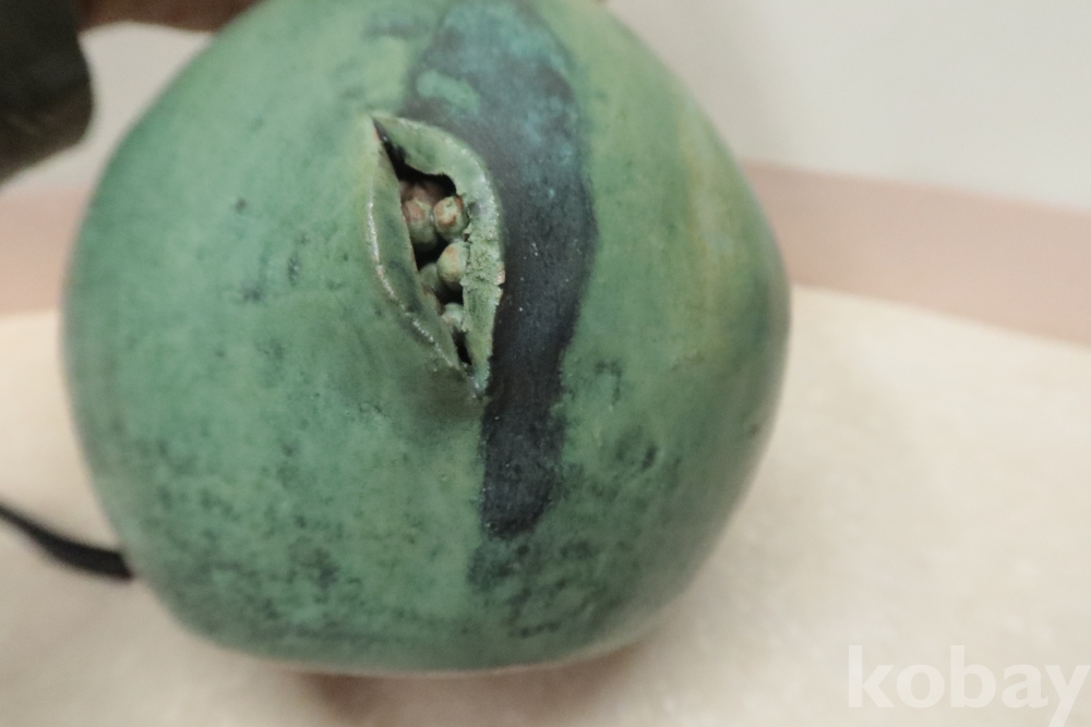 대형 사이즈의 묵직한 도자기 이며 특히 석류 과일 등의 표현한 유일무이한 명물 임니다 묘한 색감 등등 도공의 혼을 가진 명품 임니다