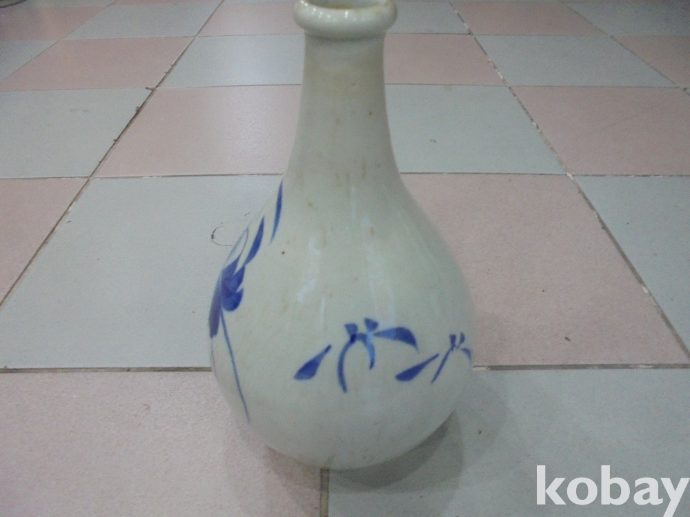 왜정시대 전후하여 잘살던집에서 혼례식 주병으로 많이사용한 오래된 자연빙열의 백자청화 가락지 목단 고급주병