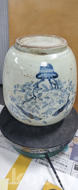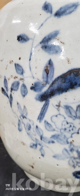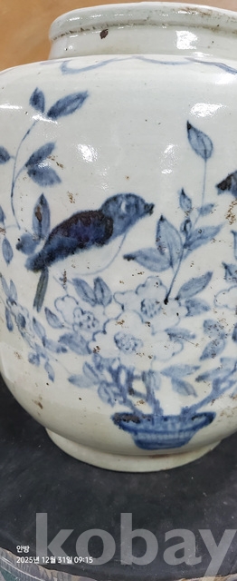 바-33.오래된 매화문화조도문양청화백자 항아리