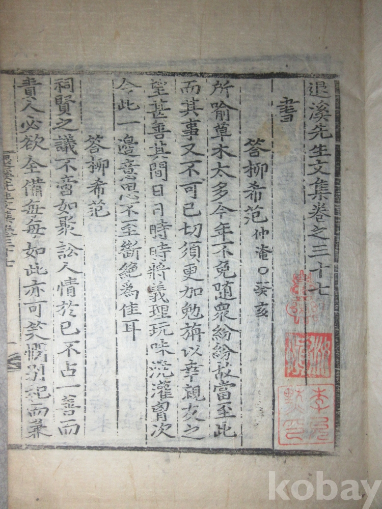 조선시대 목판본 고서적 퇴계 이황선생님의 퇴계선생문집입니다.