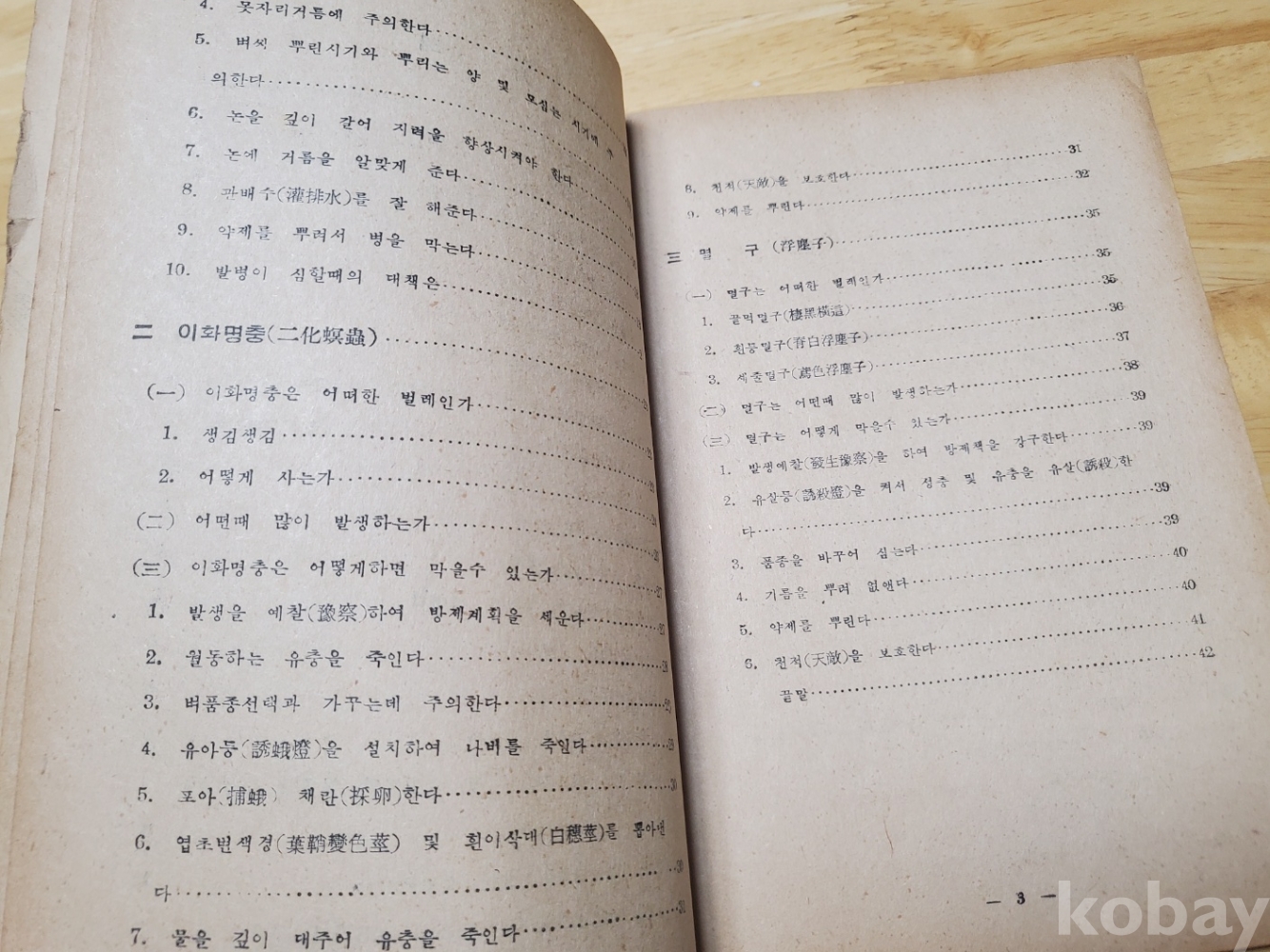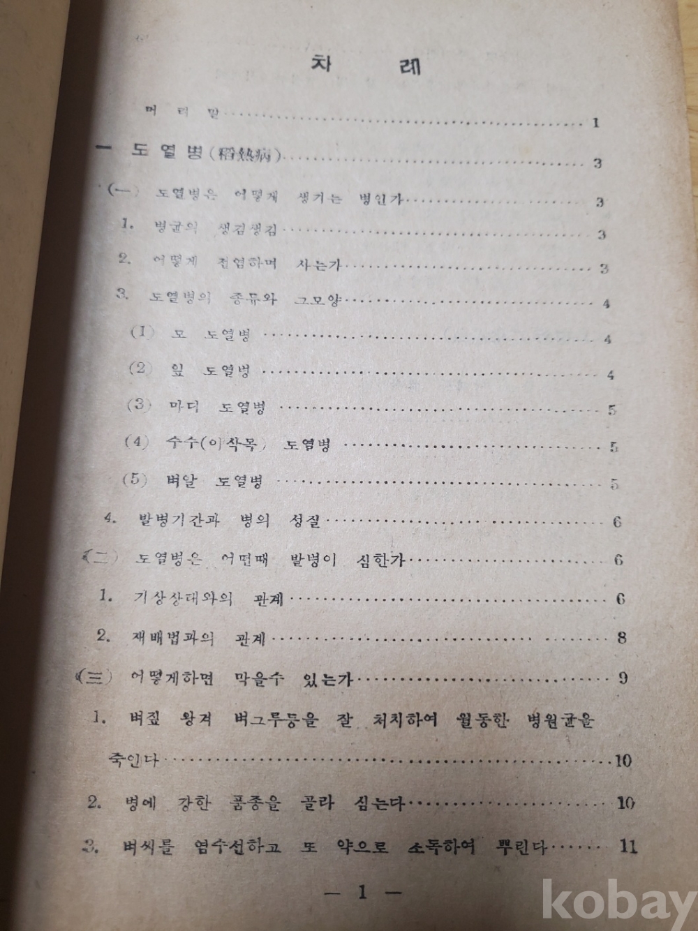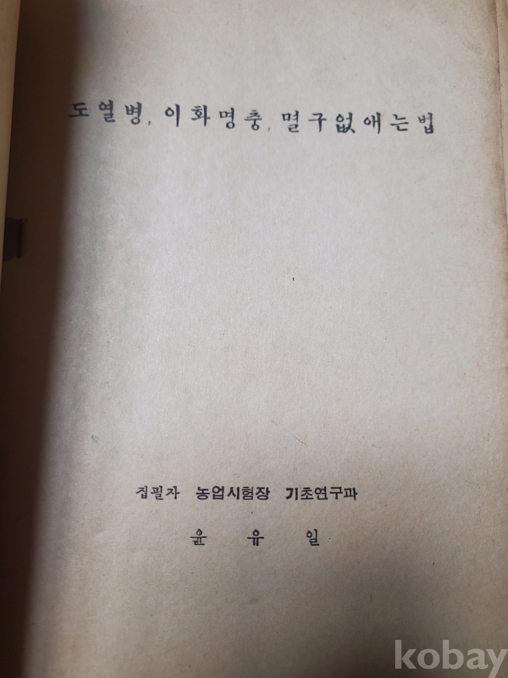 1. 도열병 이화명충 멸구를 없애는 방법, 농사원 교도국, 1950년대 추정, 42쪽, 상태 상, 사진 참조
