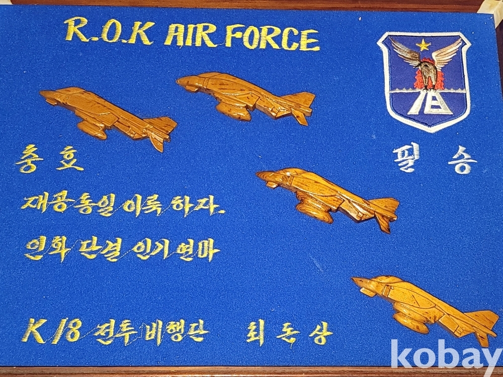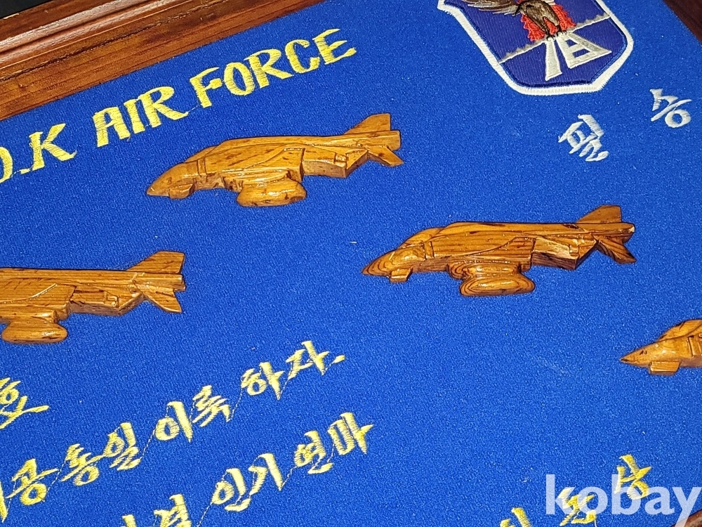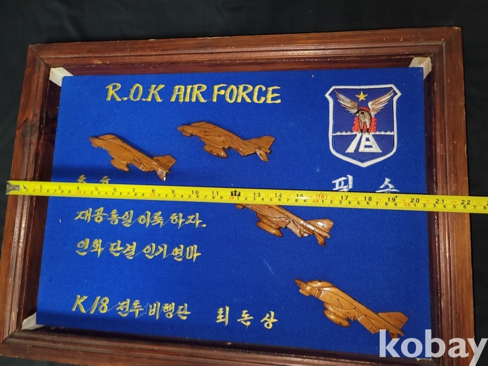 빈티지 세월 감이 느껴지는 특이한 공군 군대액자 제18전투비행단 나무재질의 군대액자입니다.